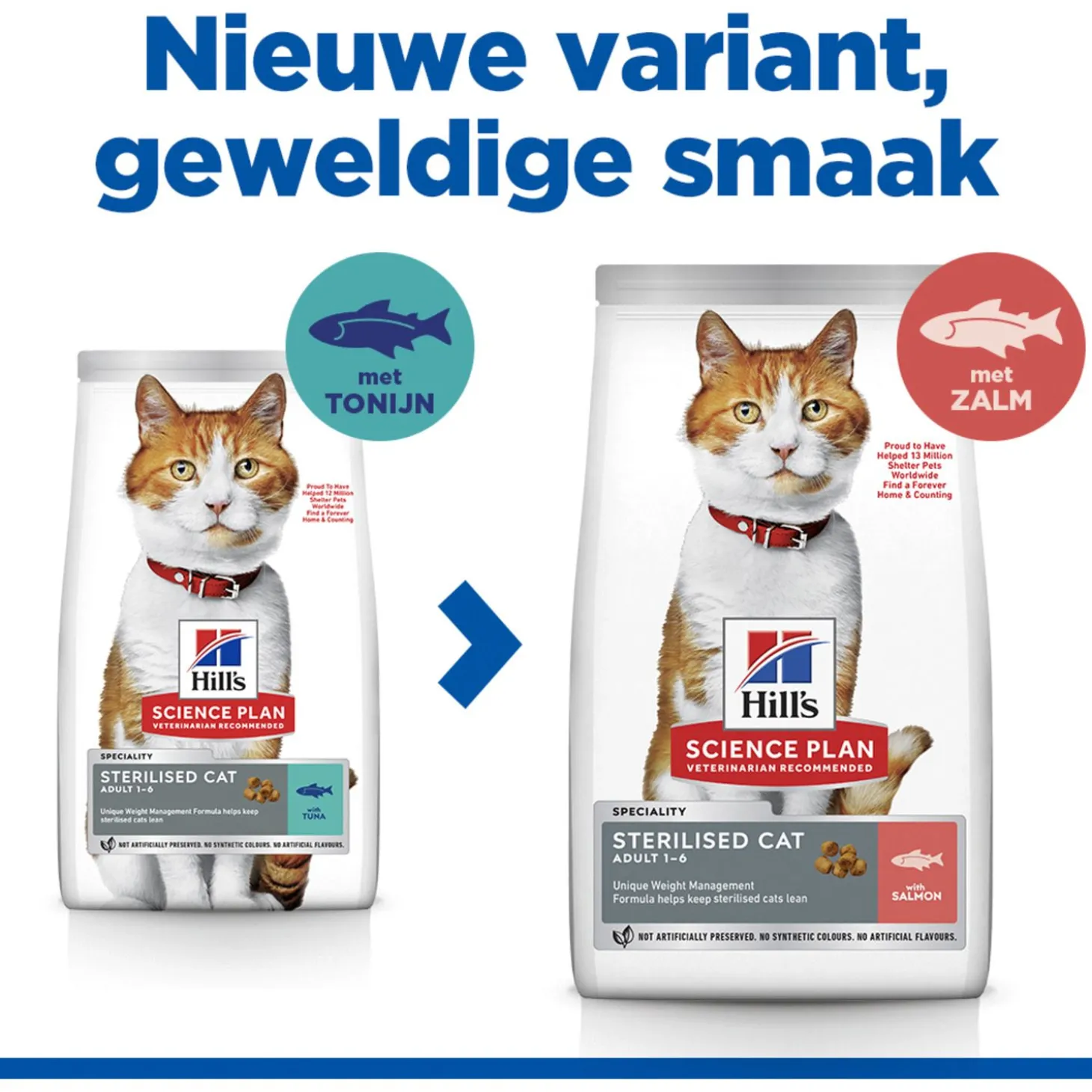 - Met toegevoegde L-carnitine, waarvan klinisch bewezen is dat het katten helpt om slank en actief blijven