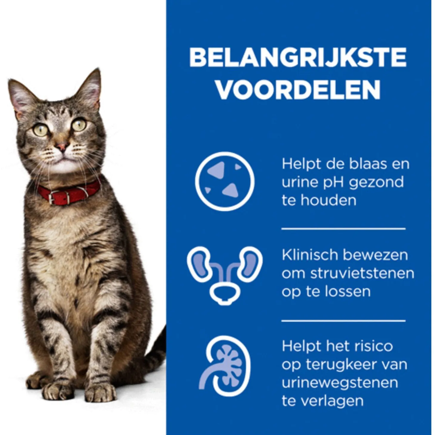 Deze complete voeding zorgt voor vermindering van herhaalde struvietsteenvorming (een oorzaak van een aandoening van de lage urinewegen) bij volwassen katten. Dit wordt bereikt dankzij een urineverzurende eigenschappen en een laag magnesiumgehalte.
