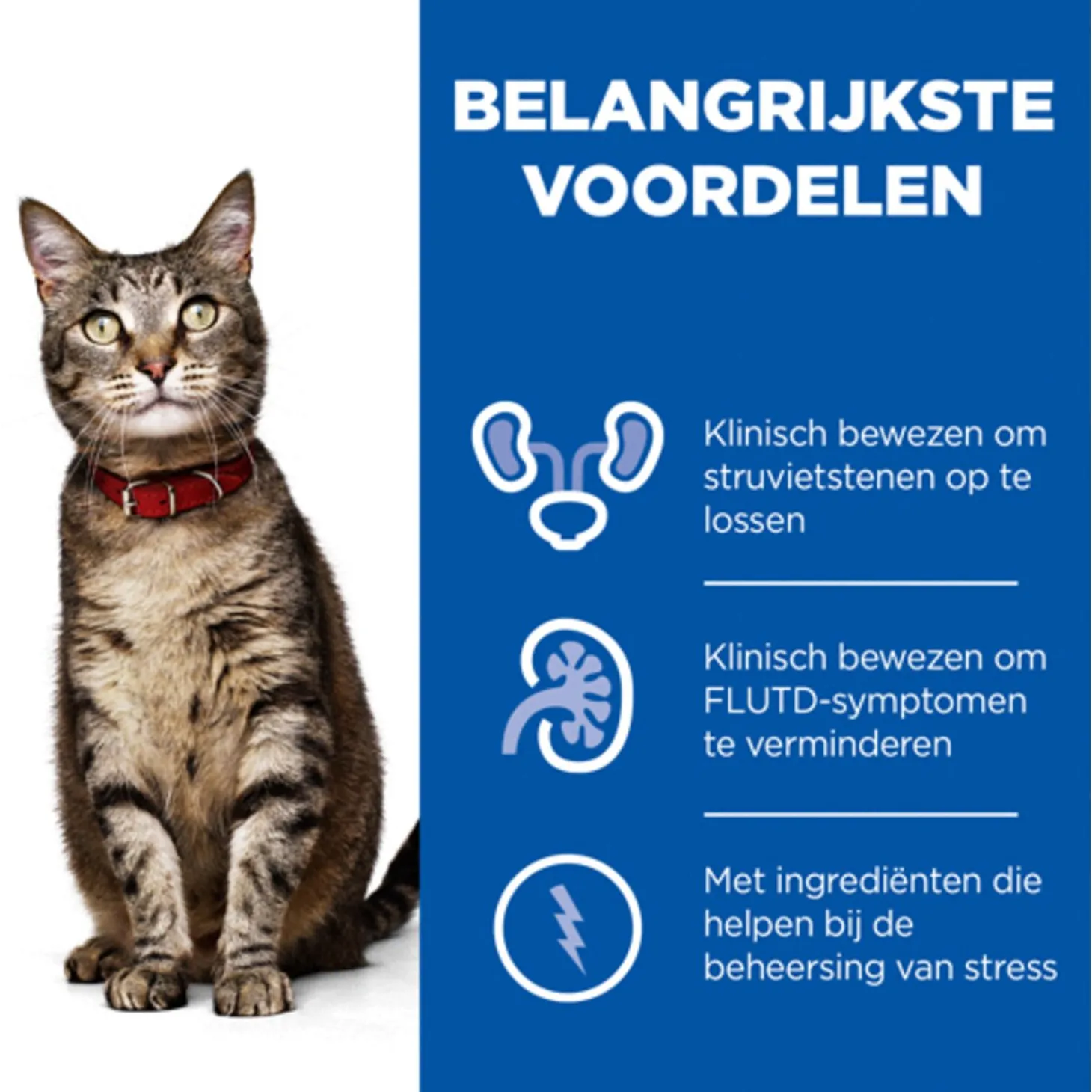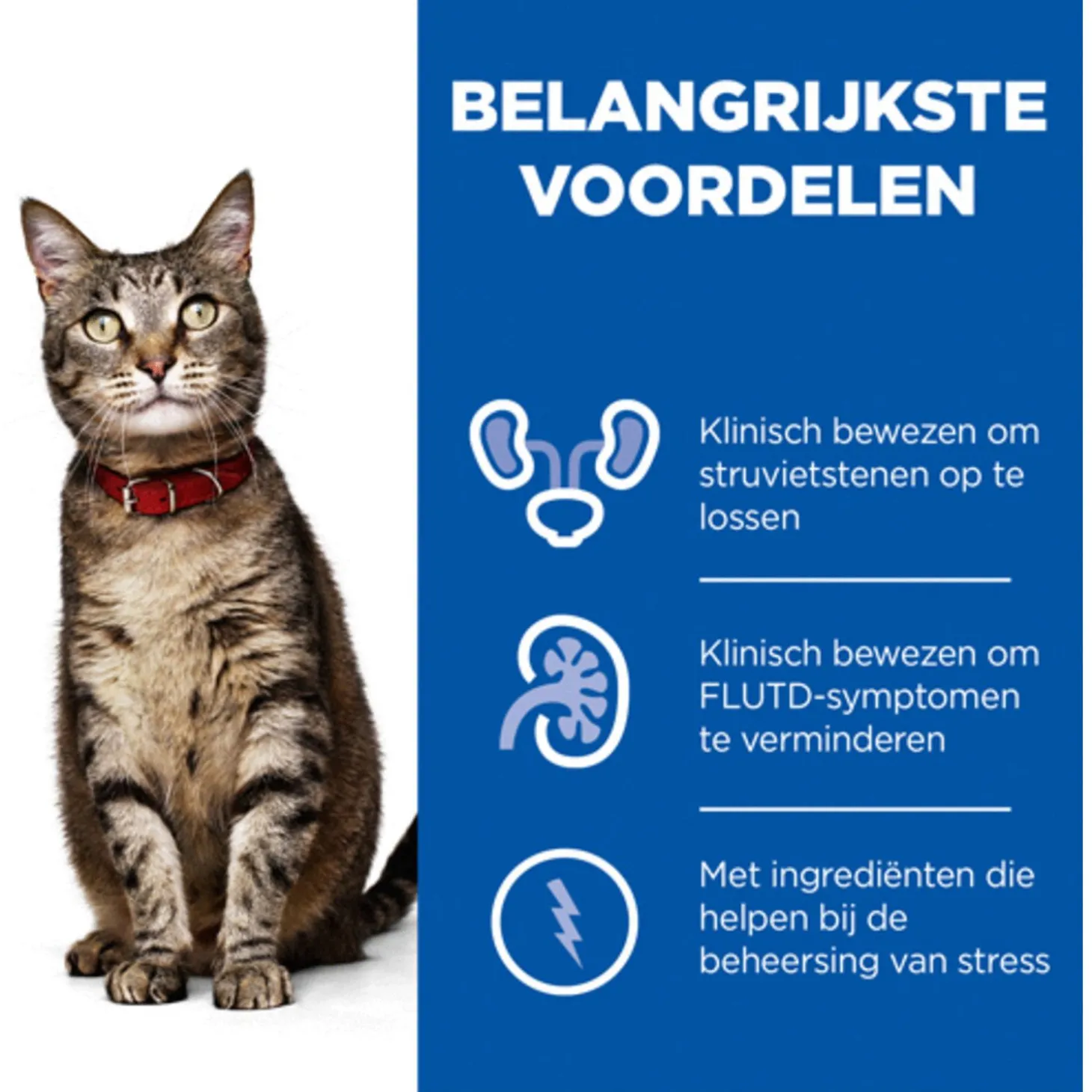 Problemen van de lage urinewegen bij de kat kunnen erg vervelend zijn. Gelukkig is er Hill’s Prescription Diet c/d Urinary Stress kattenvoer. Een wetenschappelijk samengestelde voeding met kip om stress bij katten te helpen verminderen. Stress is een veelvoorkomende oorzaak van urinewegproblemen, zoals in de lage urinewegen (FLUTD).