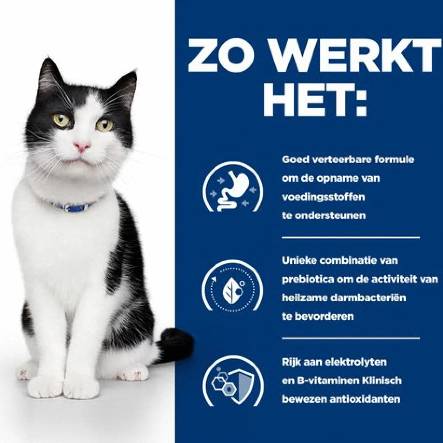 Deze complete voeding kan worden gebruikt ter vermindering van acute intestinale absorptiestoornissen, als compensatie voor een slechte spijsvertering en bij exocriene pancreasinsufficiëntie. Het natvoer is geschikt voor volwassen katten. De voeding heeft een verhoogd elektrolytengehalte, goed verteerbare ingrediënten en een laag vetgehalte.