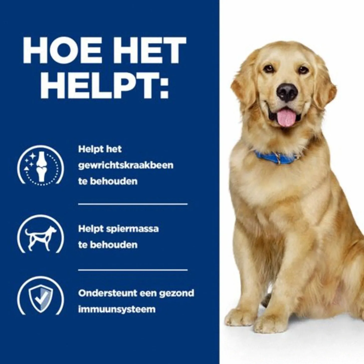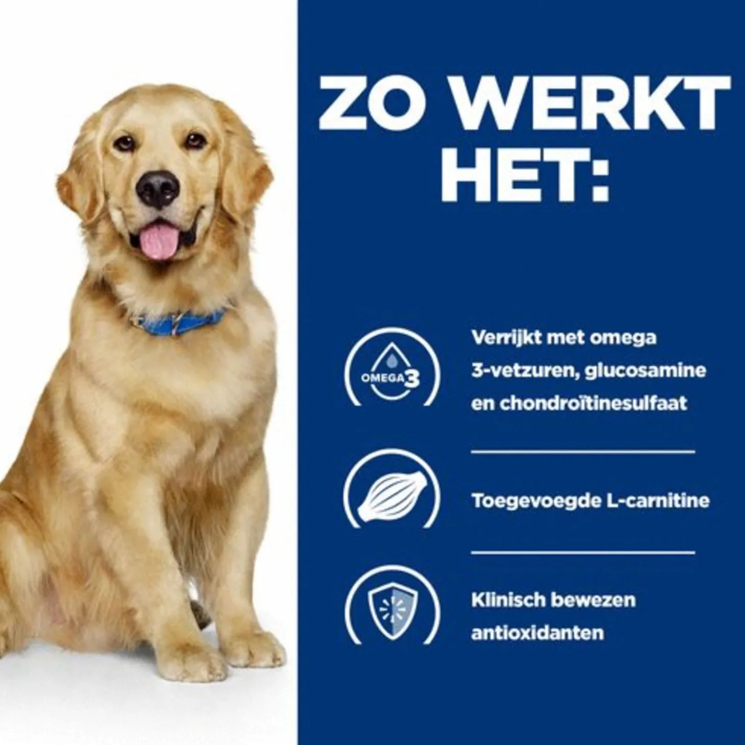 Problemen met de gewrichten van de hond kunnen erg vervelend zijn. Gelukkig is er Hill’s Prescription Diet j/d Joint Care hondenvoer. Een wetenschappelijk samengestelde voeding met kip die je hond ondersteunt bij het lopen, rennen, spelen en traplopen door pijnlijke gewrichten te verzachten en gezond kraakbeen te behouden. In slechts 21 dagen zal er een zichtbare verbetering optreden.
