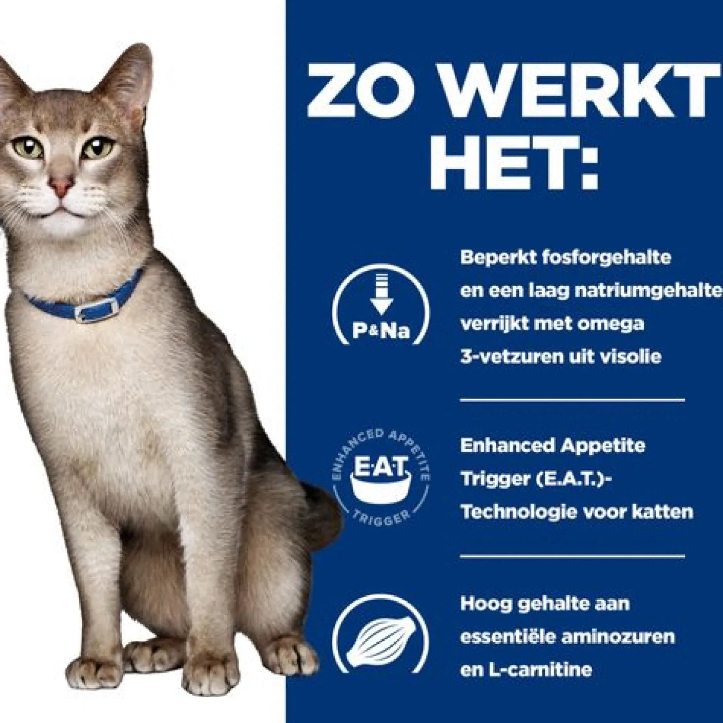 - Klinisch bewezen voeding die de levenskwaliteit verbetert & verlengt bij katten