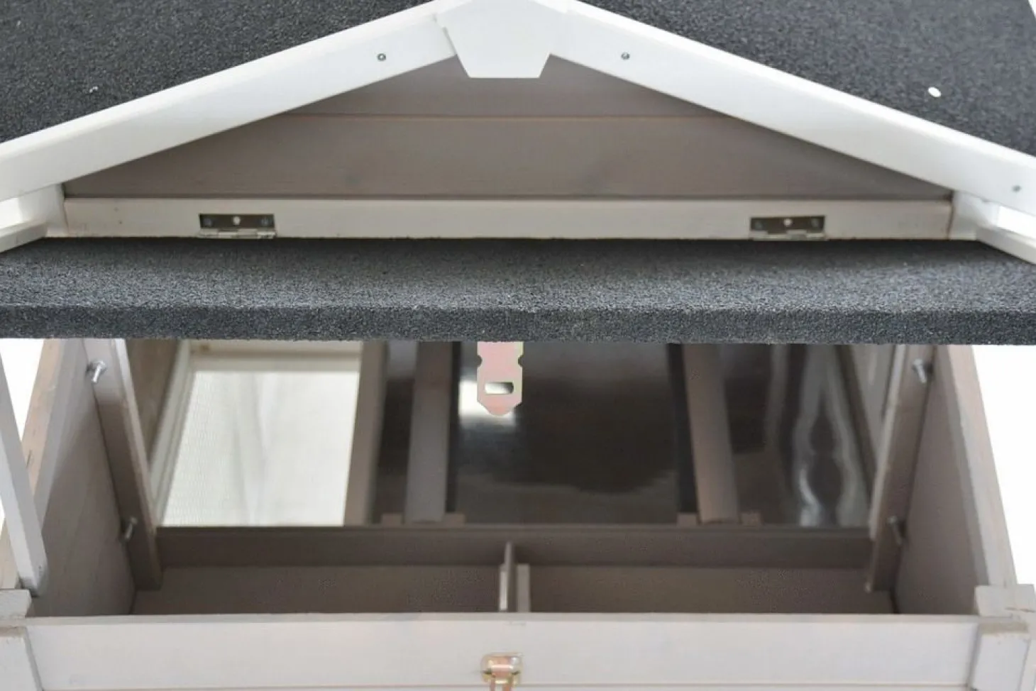 Dit konijnenverblijf is gemaakt van sparren- en dennenhout en heeft een ruime ren die je met een grote deur kunt openen. Vervolgens kan je dier via het trappetje naar boven om het nachthok op te zoeken. Deze ruimtes kan je ook bereiken door de deur en het dak van het nachthok te openen. Door de handige schuiflade wordt schoonmaken ook gelijk een stuk makkelijker. Het hok is geschikt voor zowel kippen als konijnen, het is voorzien van een legnest, nachthok en ren (geen zitstok). Als laatste bevat het hok een terras waar je bijvoorbeeld vrolijke plantjes op kunt plaatsen.