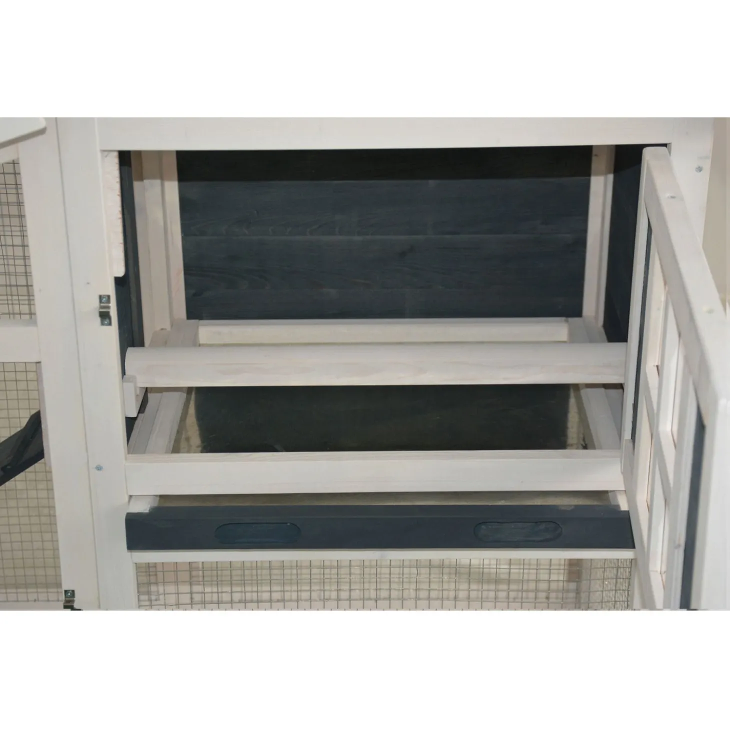 Het Konijnenhok Rome heeft een afmeting van 152 x 60 x 96 cm en is antraciet met wit van kleur.