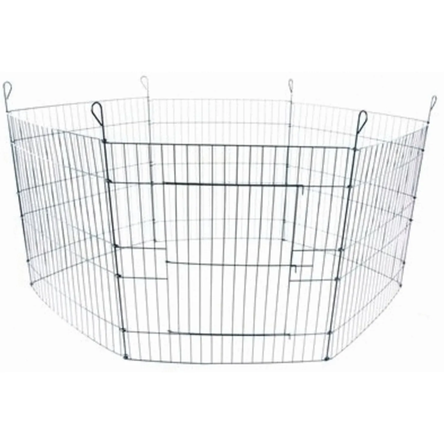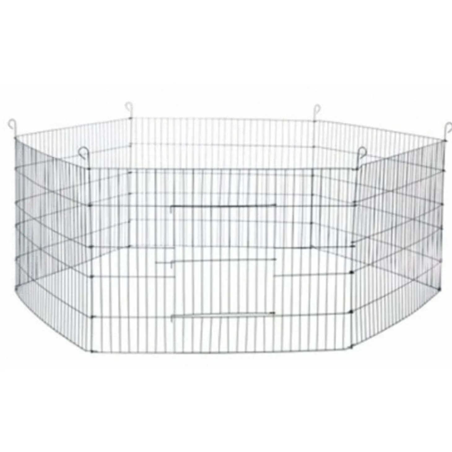 De konijnenren is een eenvoudige en praktische ren voor binnen of buiten, zodat je konijnen de ruimte hebben om rond te lopen zonder dat ze ontsnappen. Als je de ren groter wilt maken kan je meerdere rennen combineren. Dankzij het deurtje kan je eenvoudig je konijn in en uit de ren tillen. De konijnenren heeft de volgende afmeting: