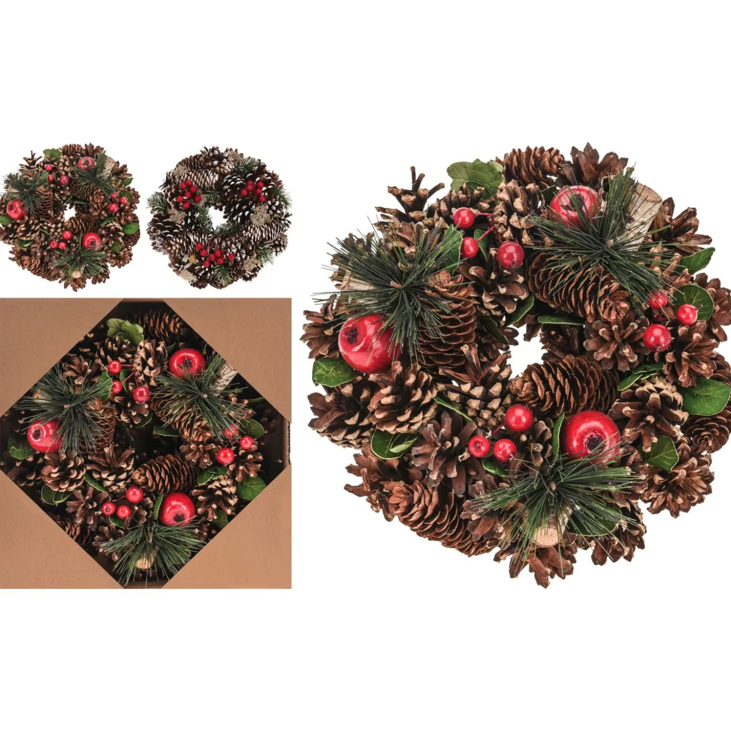 De krans met dennenappels is 27 x 27 x 9 cm. Je krijgt 1 willekeurige variant toegestuurd. Bezoek 1 van onze winkels als je een specifieke variant wilt aanschaffen.