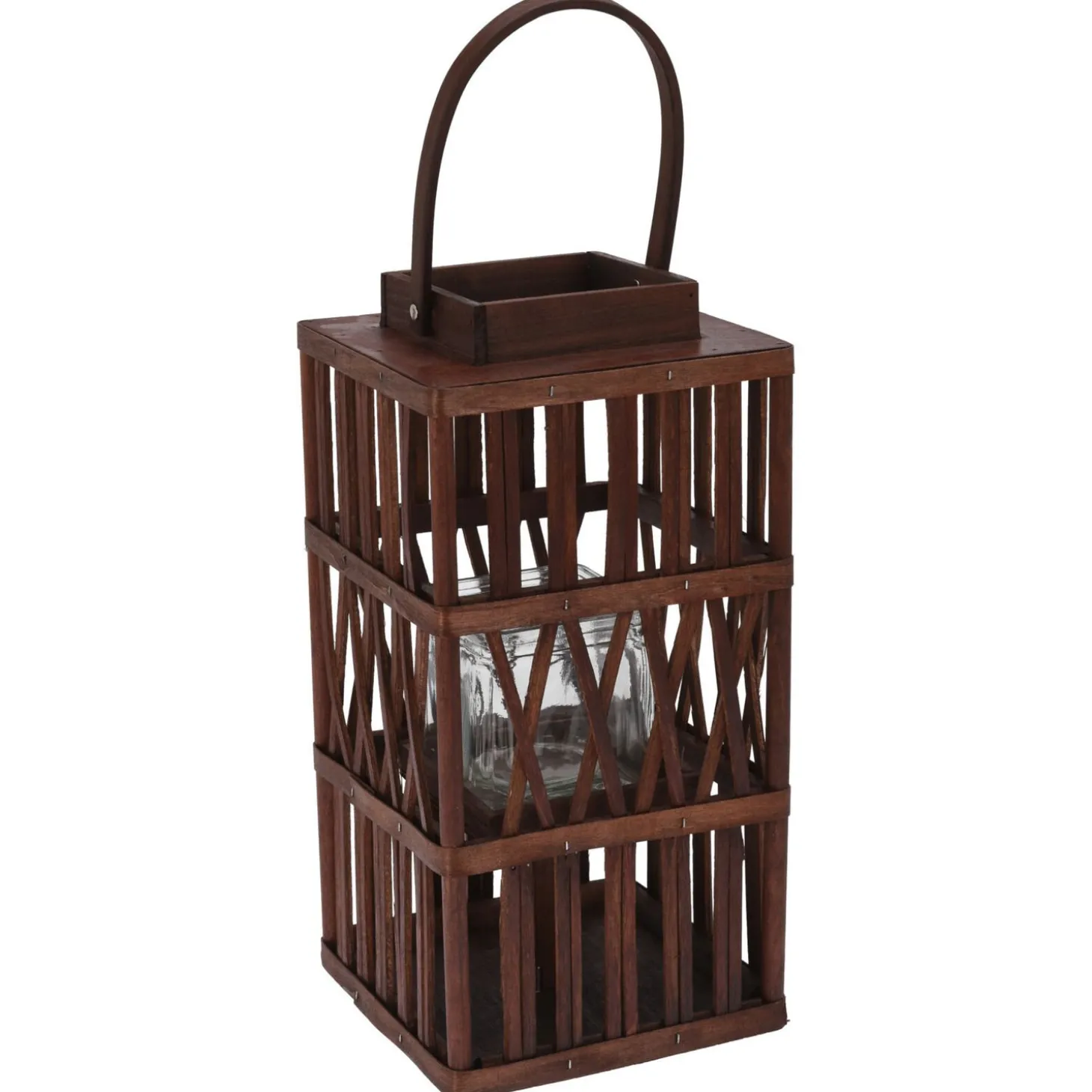 De lantaarn van hout is bruin en 38 cm groot.