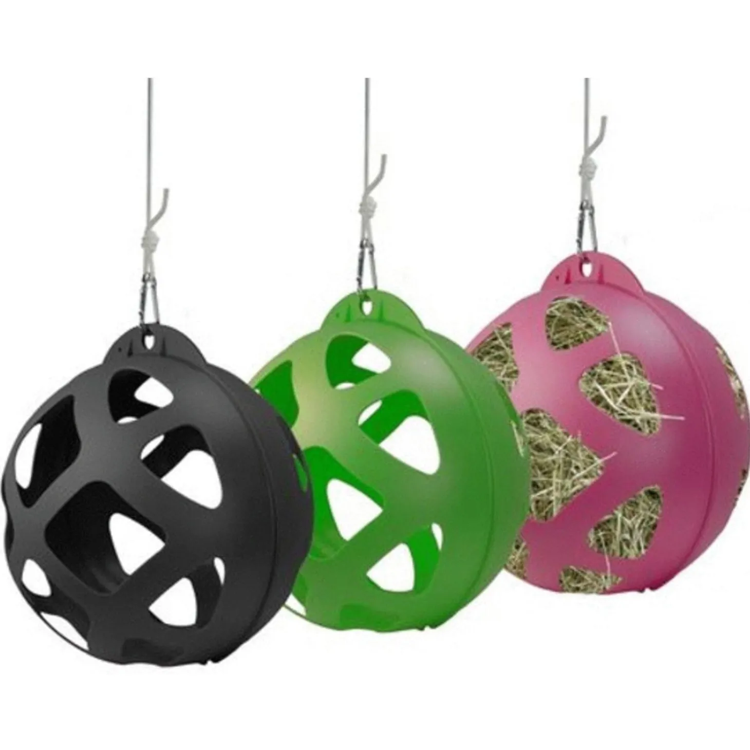 Deze unieke hooifeeder is gemaakt voor alle grazende dieren, gemaakt van oersterk en UV-bestendig polyamide kunststof. Dit maakt de slowfeeder praktisch onverwoestbaar. De feeder heeft de vorm van een bal met allerlei specifieke openingen die ervoor zorgen dat het hooi geleidelijk vrijkomt, voor een optimale vertering. Door zijn ronde vorm fungeert de feeder ook als speelbal waarmee verveling in de stal kan worden tegengaan. Je kan de slowfeeder makkelijk vullen, optillen, ophangen en reinigen. Deze feeder is ideaal voor op stal, in de trailer of in de wei.