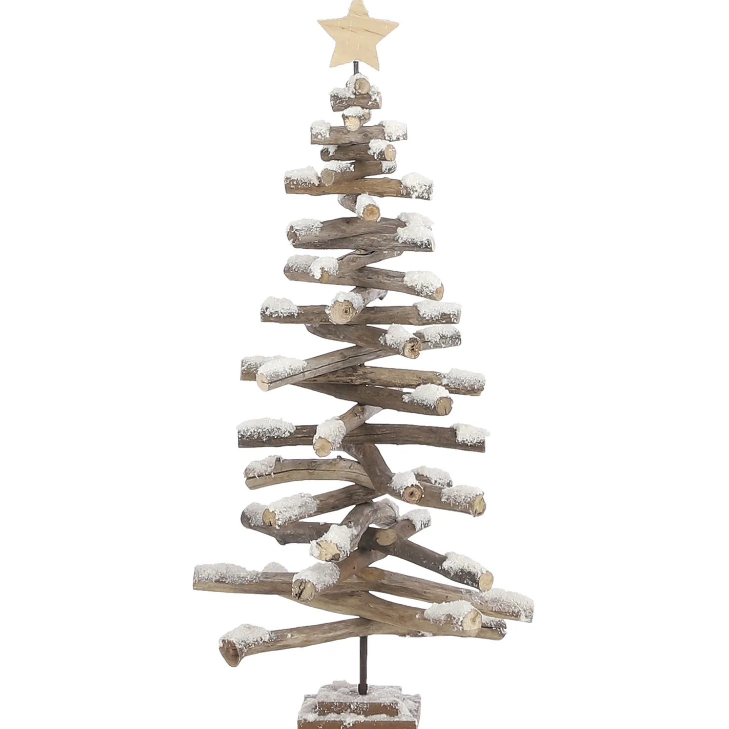 Houten kerstboom met kunstsneeuw