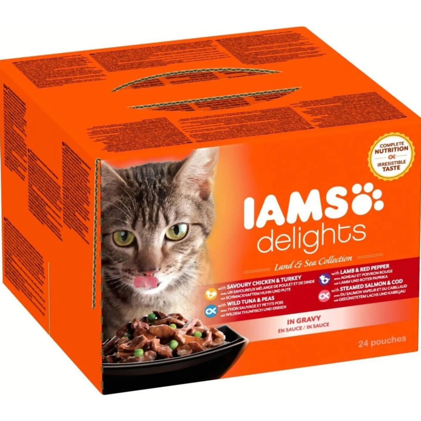 - Land & Sea Collection in Gravy met vier smakelijke varianten: Hartige kip en kalkoen, Lam met rode peper, Wilde tonijn met erwten en Gestoomde zalm met kabeljauw