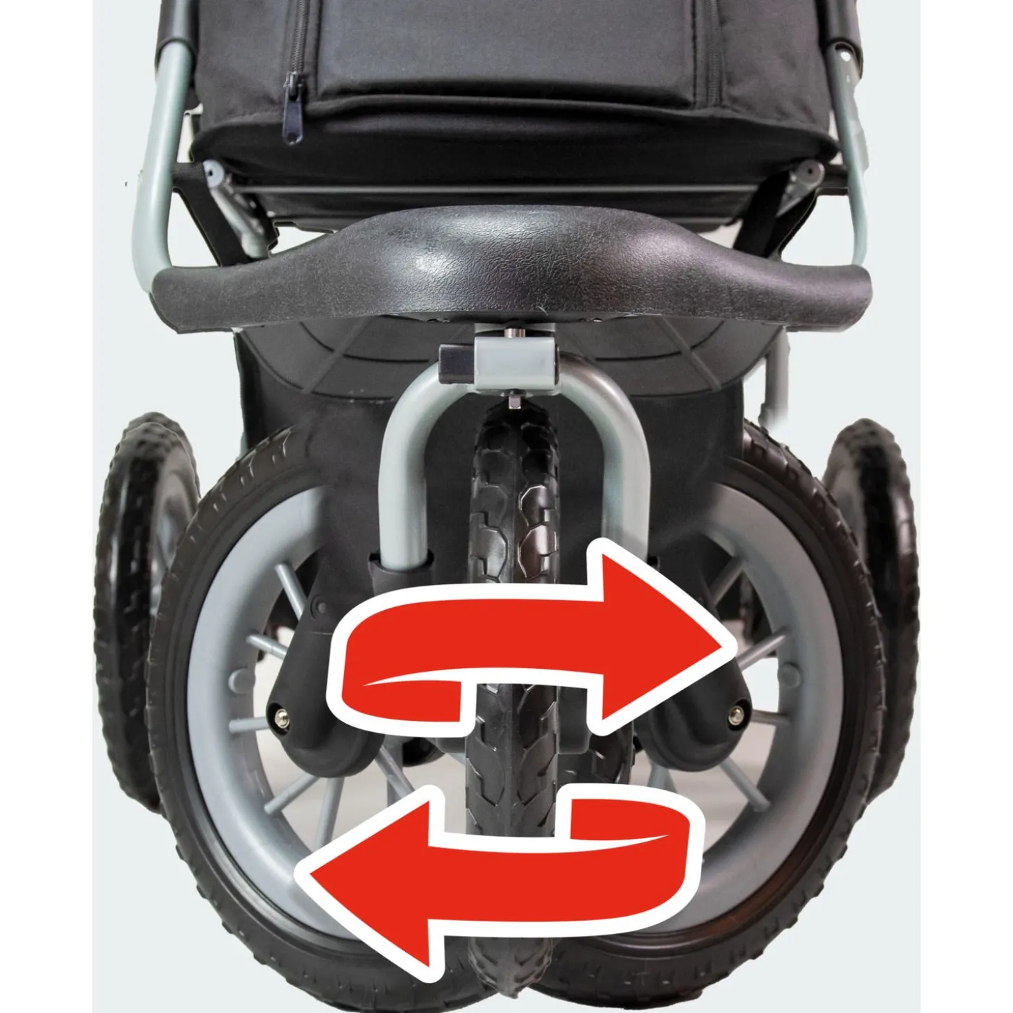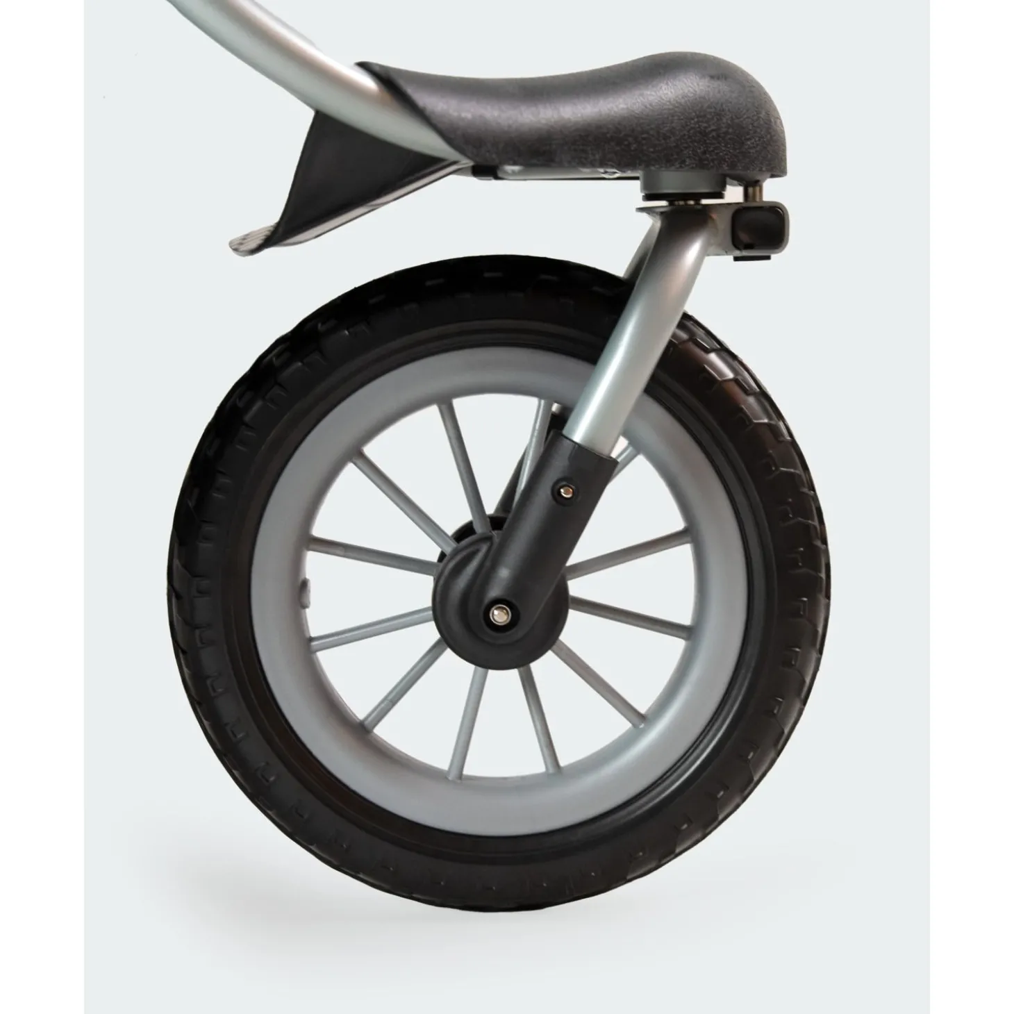 De banden van de buggy zijn gemaakt van duurzaam geproduceerd foam wat een sterk dempend karakter heeft. Te vergelijken met de comfort van luchtbanden.. alleen kunnen deze banden niet lek gaan. De buggy is perfect te gebruiken op onverharde wegen, het voorwiel kan namelijk gefixeerd worden waardoor hij niet heen en weer zal stuiteren.