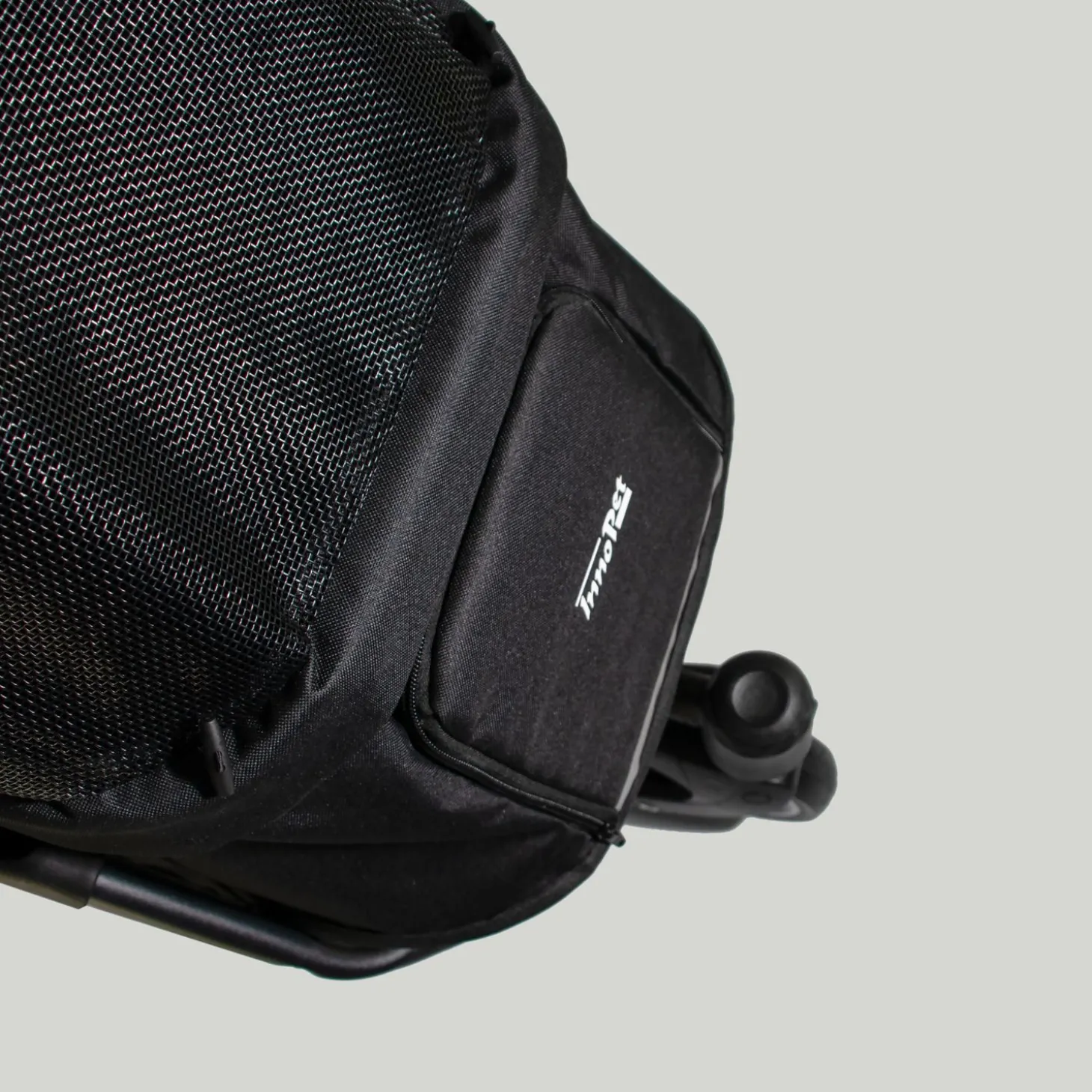 De buggy kan aan de voorzijde open om je hond in de buggy te tillen. Je ritst deze flap dicht voor extra veiligheid onderweg. Het zitgedeelte bevat 2 aanleglijnen. De kar heeft voldoende ventilatiegaas zodat je hond genoeg lucht krijgt, ook met de ritsen dicht.
