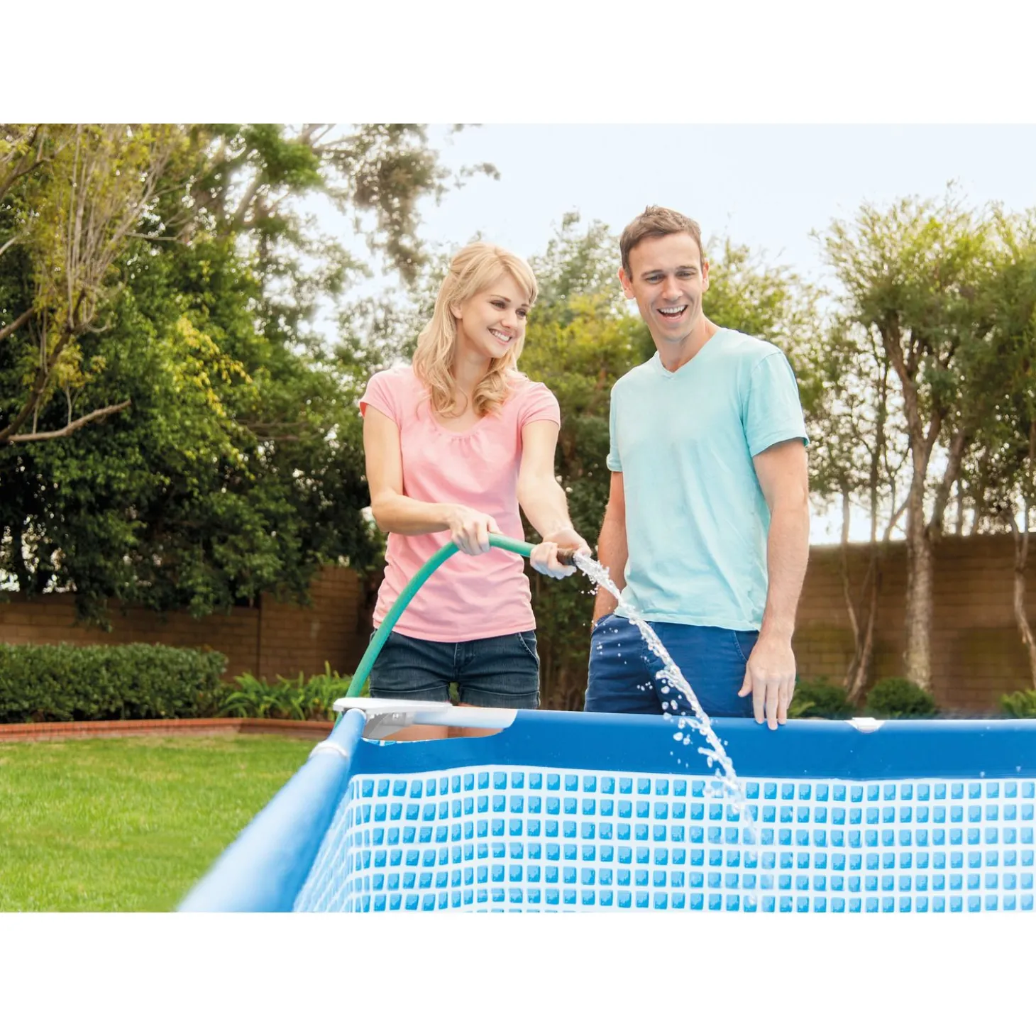 De liner van het zwembad is gemaakt van hoogwaardig materiaal en is bestand tegen chloor en UV-straling. Het frame is gemaakt van gepoedercoat staal en is hierdoor erg sterk en stabiel. Het zwembad is met 2-3 personen binnen 30 minuten op te zetten. De ronde hoeken zorgen voor extra veiligheid voor kinderen. Sluit een filterpomp aan om het water schoon te houden.