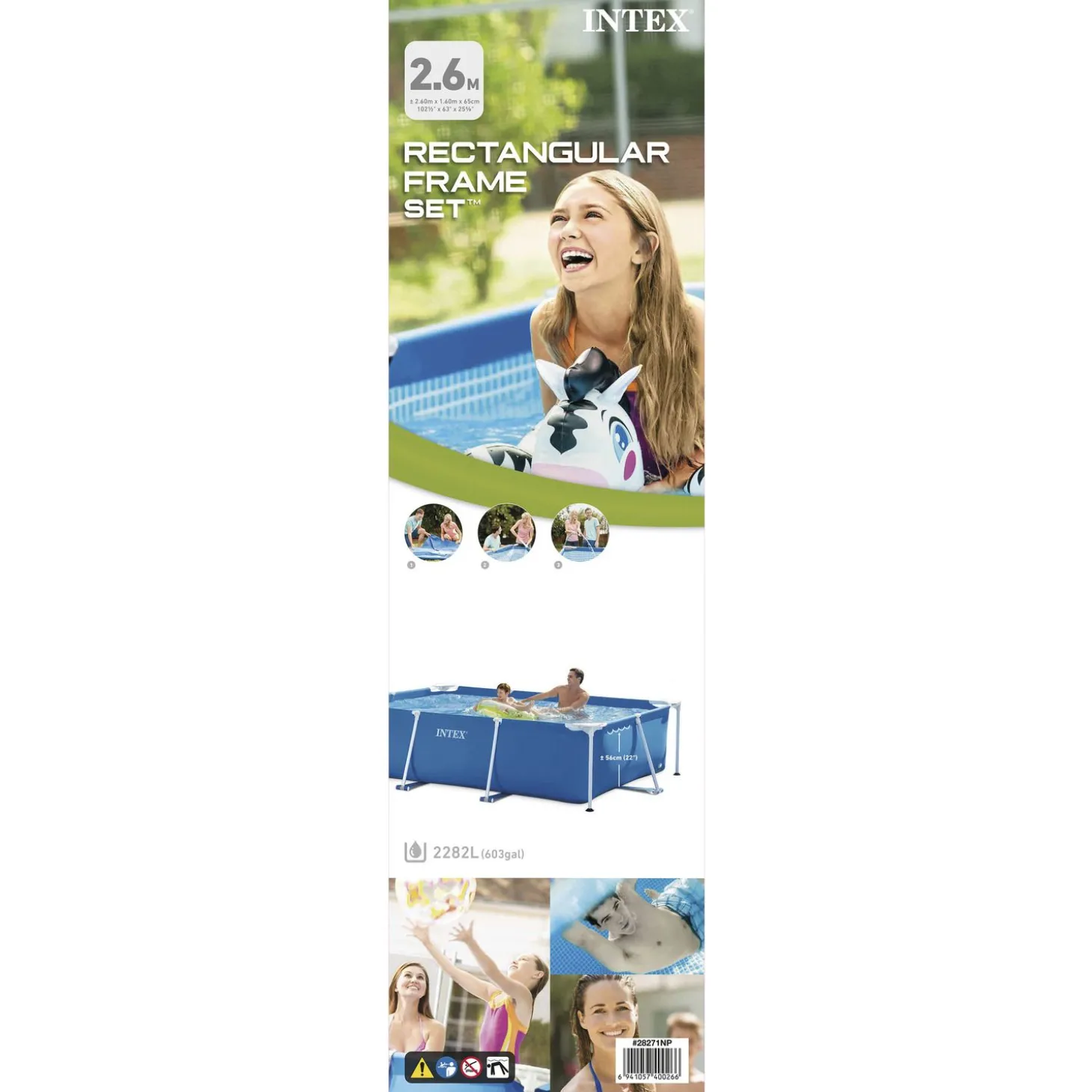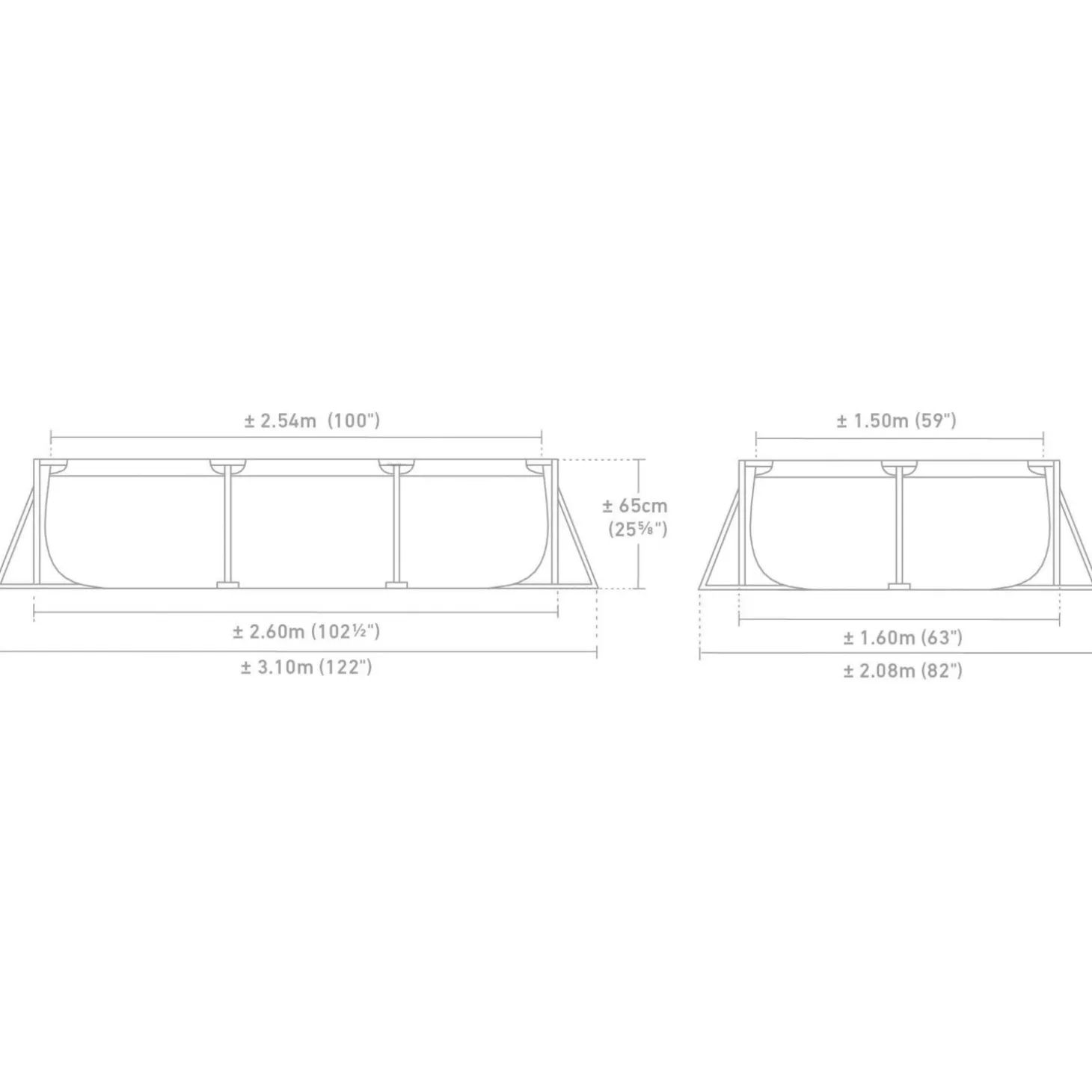 Dit rechthoekige frame zwembad is perfect voor urenlang waterpret in je eigen tuin. Met een afmeting van 260 x 160 x 65 cm biedt het zwembad genoeg ruimte om te zwemmen, plonsen en spelen voor kinderen en volwassenen. Het stevige frame en de 3-laags wanden zorgen voor een lange levensduur en stabiliteit.