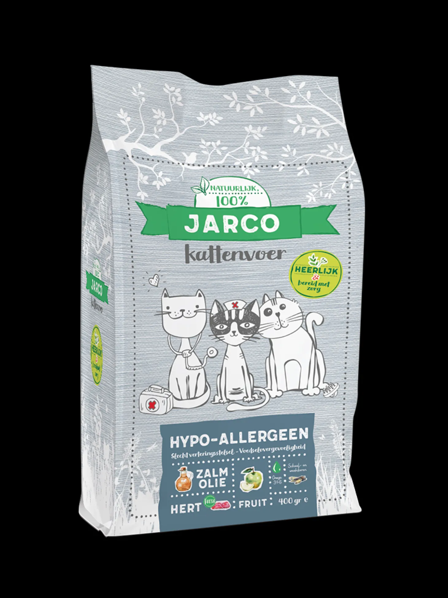 Sommige katten hebben helaas last van jeuk door een voedselallergie of diarree door een gevoelig spijsverteringsstelsel. Gelukkig is dit makkelijk te voorkomen met de juiste voeding. Natural Cat Vers Vlees Hypoallergeen van Jarco is tarweglutenvrij premium voeding en zeer geschikt voor katten met een slecht verteringsstelsel en voedsel-overgevoeligheid.