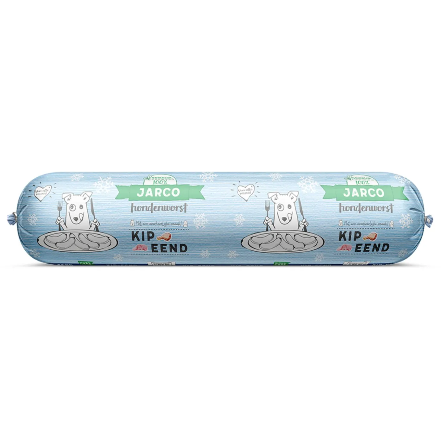 Jarco Dog Diepvries Worst Kip/Eend is verkrijgbaar in 250 g en 600 g.