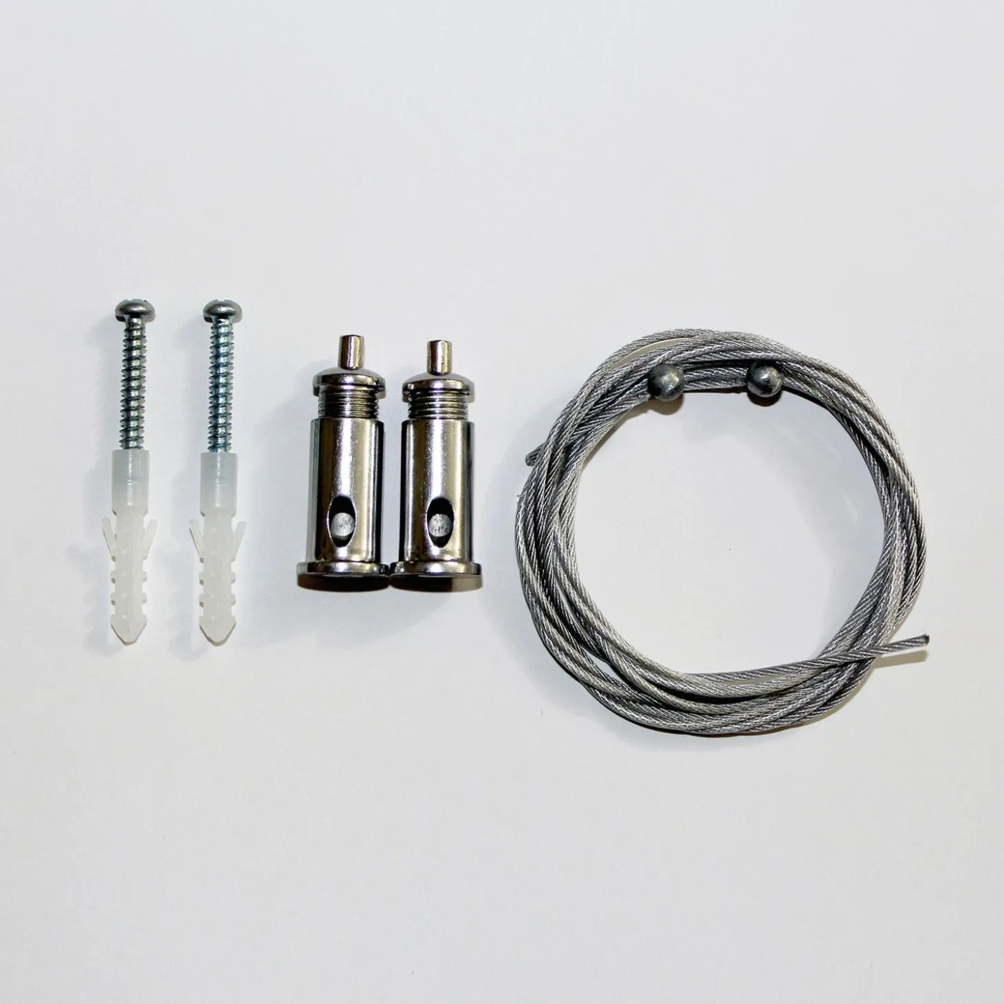 - Rvs kabel aan de JBL LED lamp bevestigen, houder aan het plafond bevestigen en in de gewenste lengte laten hangen