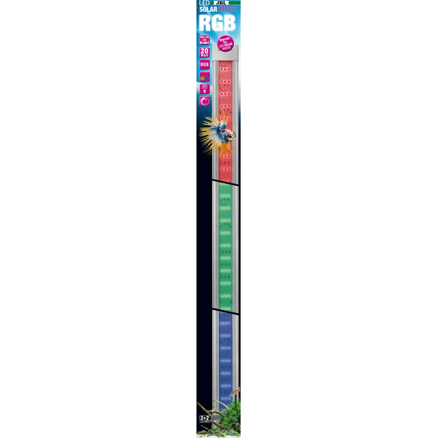- Speciale verlichting met RGB ledlampjes voor het creëren van kleureffecten, ideaal als vervanging voor een tweede, gekleurde buislamp (T5 of T8). 40% meer lichtopbrengst vergeleken met gen.1. Optimaal koellichaam voor meer vermogen