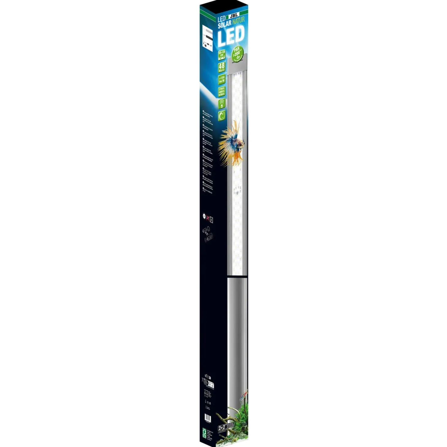 - Maximale lichtopbrengst van 150 lumen/watt voor mooie aquariumplanten: extreem hoge, fotosynthetisch actieve straling (PAR) van meer dan 220 µM/s/m²