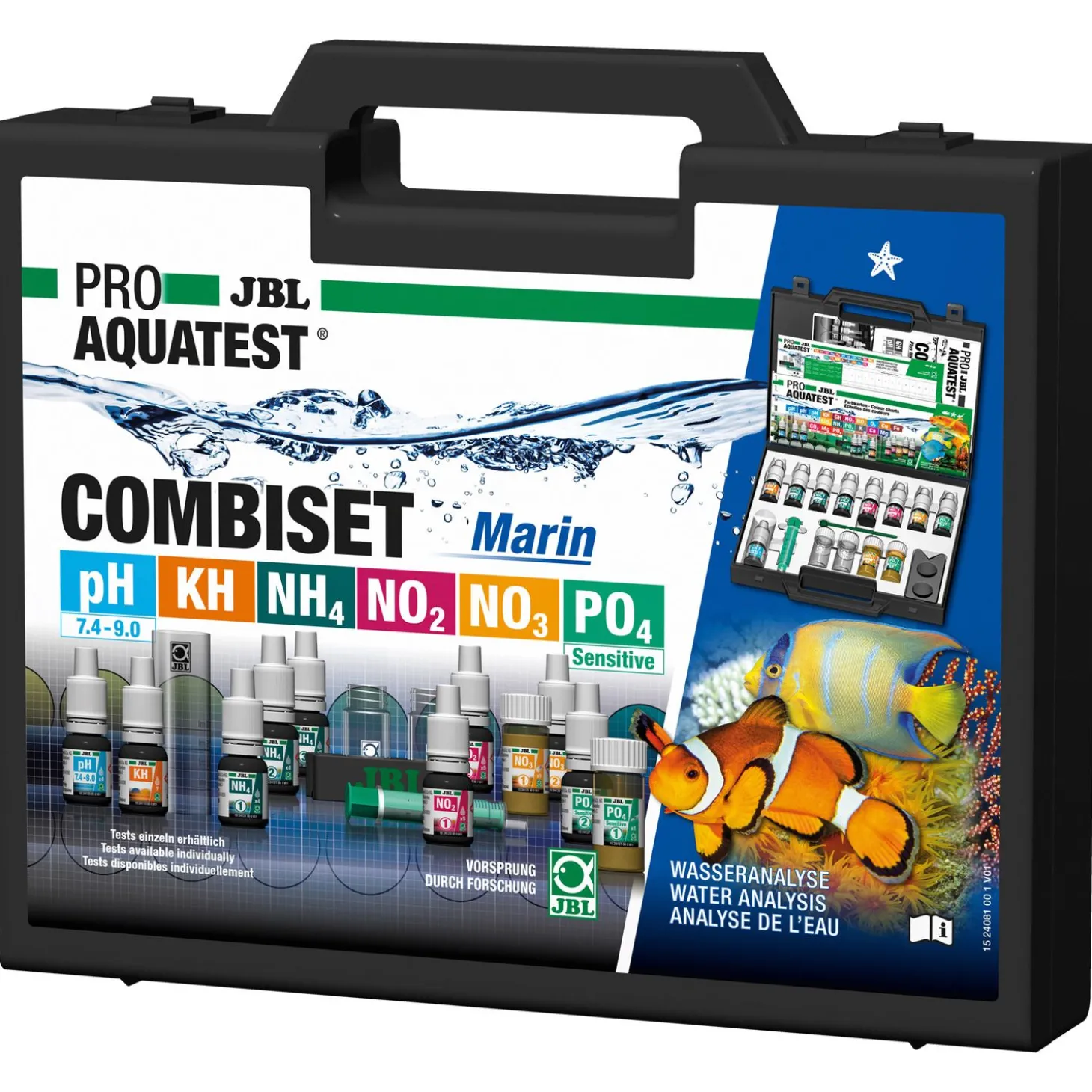 - 6 watertesten voor een eenvoudige maar nauwkeurige bepaling van de belangrijkste waterwaarden in zoutwater