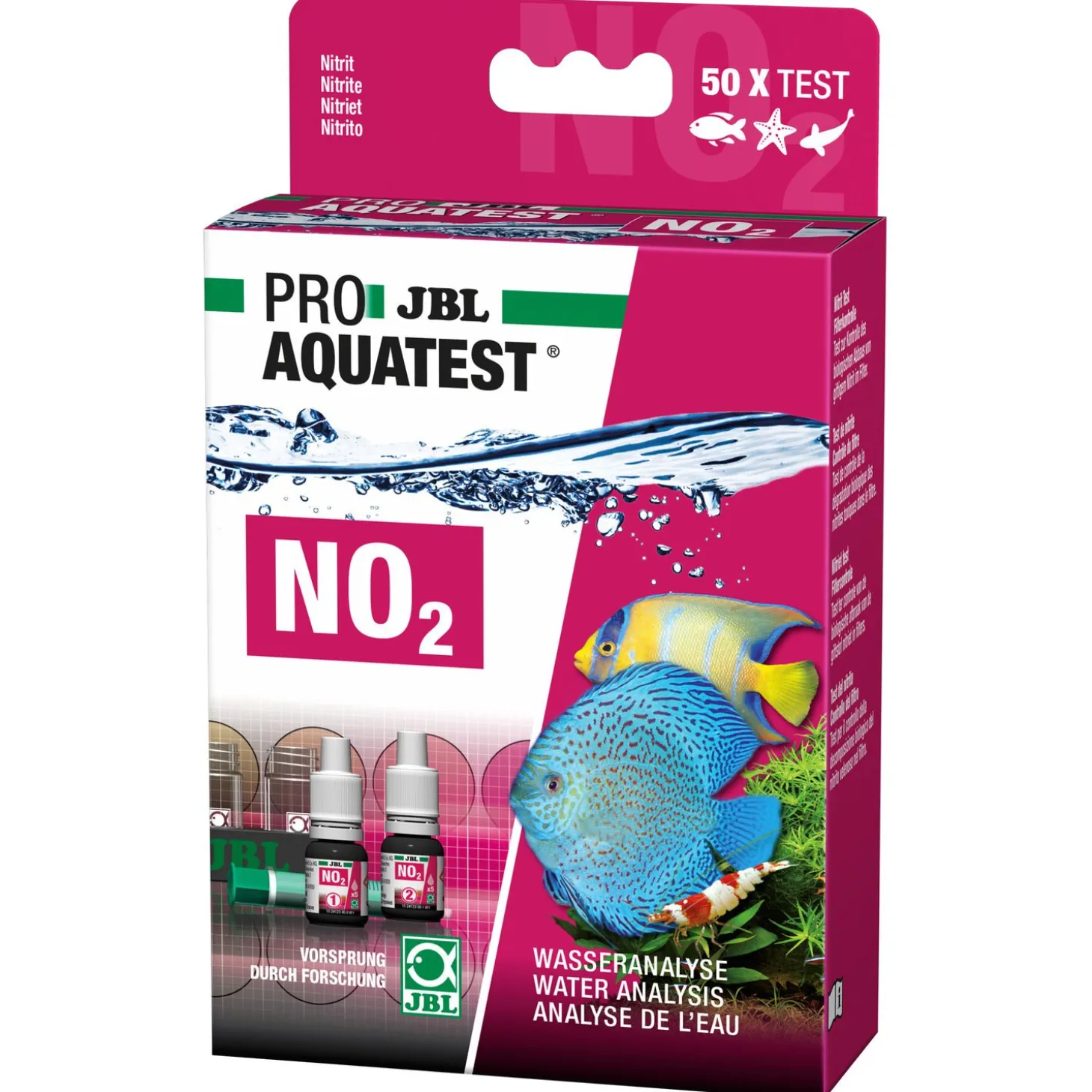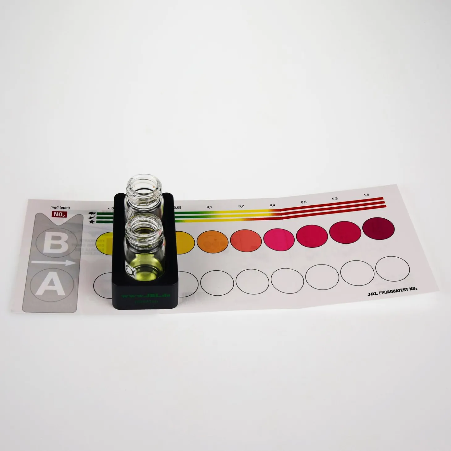 - Incl. 2 reagentia, 2 glazen cuvetten met schroefdop, spuit, comparatorblok en kleurenscala