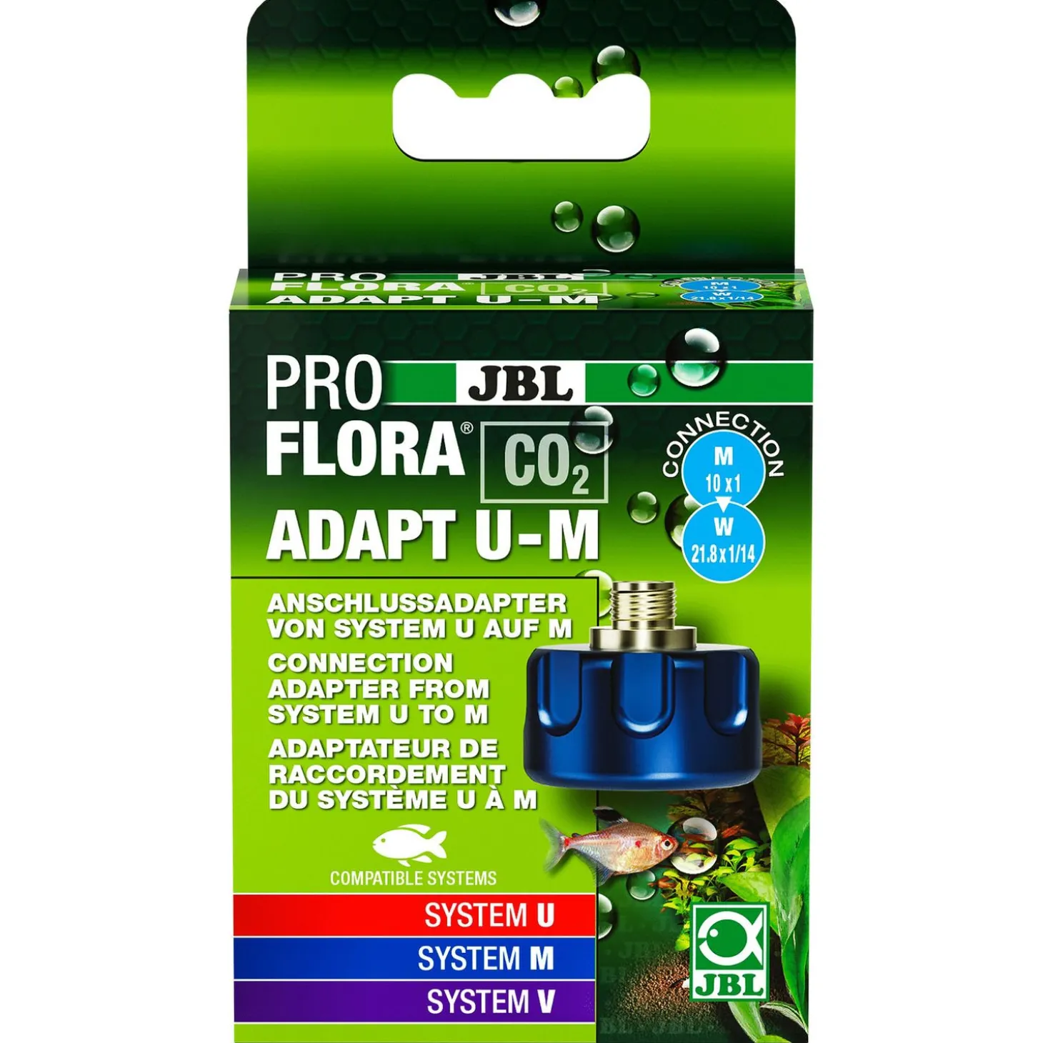 - Adapter op JBL drukregelaar voor wegwerpflessen (M10x1) schroeven – dan past hij op CO2 hervulbare flessen W21,8×1/14