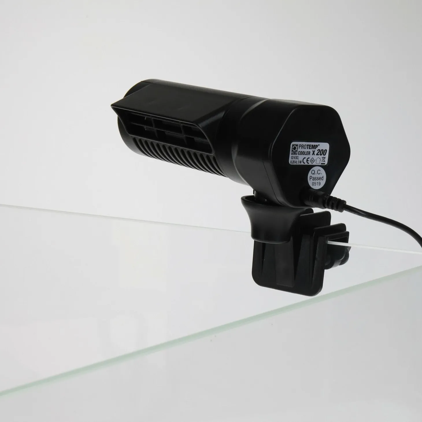 - Eenvoudige montage op de aquariumrand. Glasdikte: max. 2,4 cm. Luchtstroomrichting flexibel. Koeler 360° draaibaar