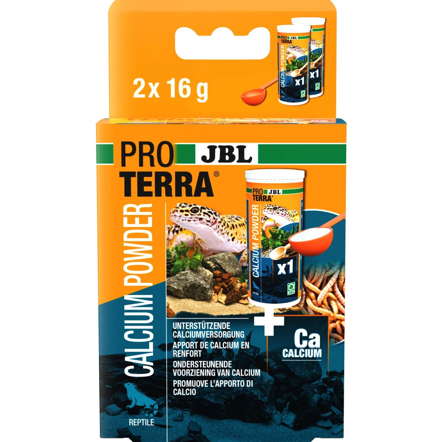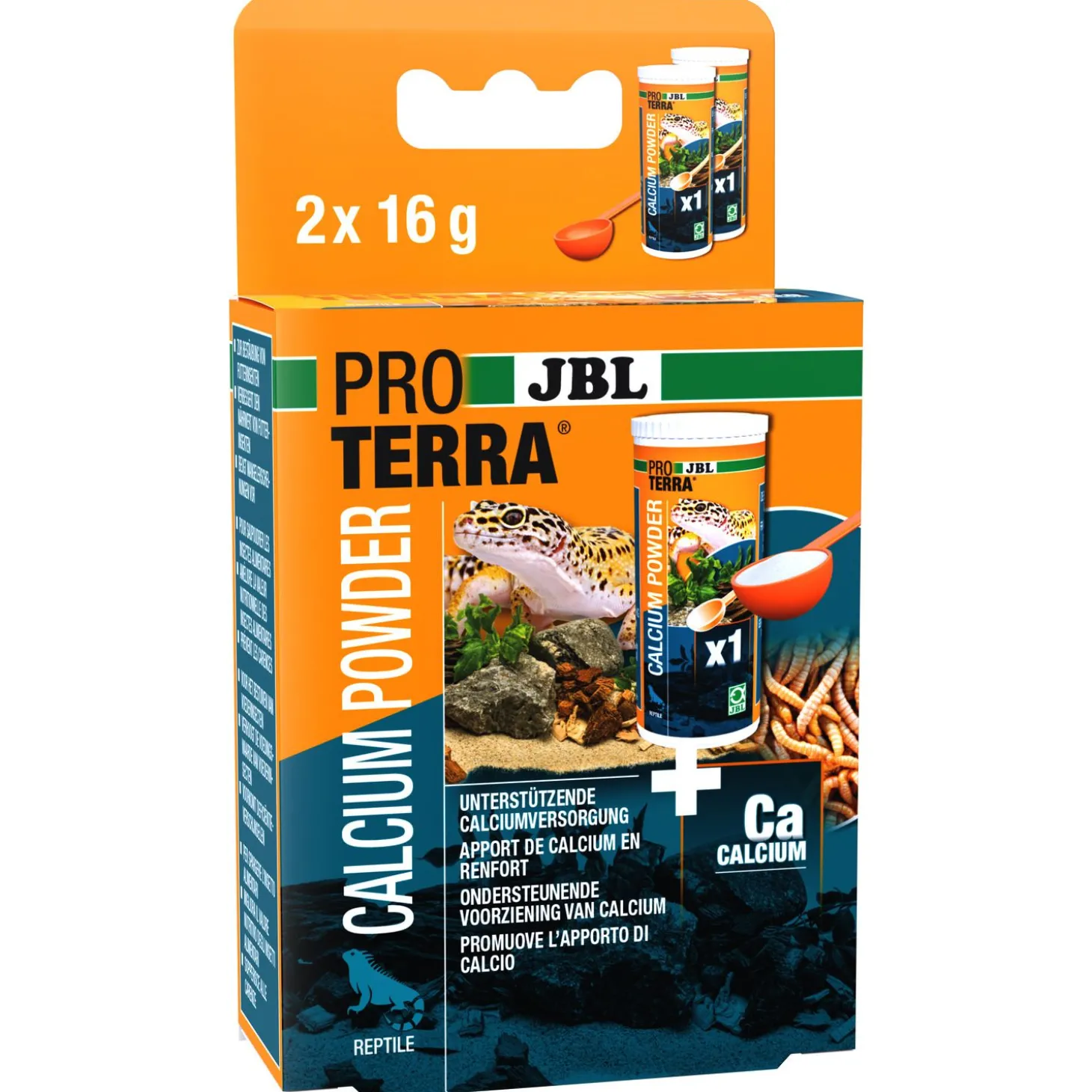 - Eenvoudig in gebruik: Voederinsecten in een houder doen, bestuiven met de doseerlepel, zacht schudden tot het calciumpoeder aan de dieren blijft hangen