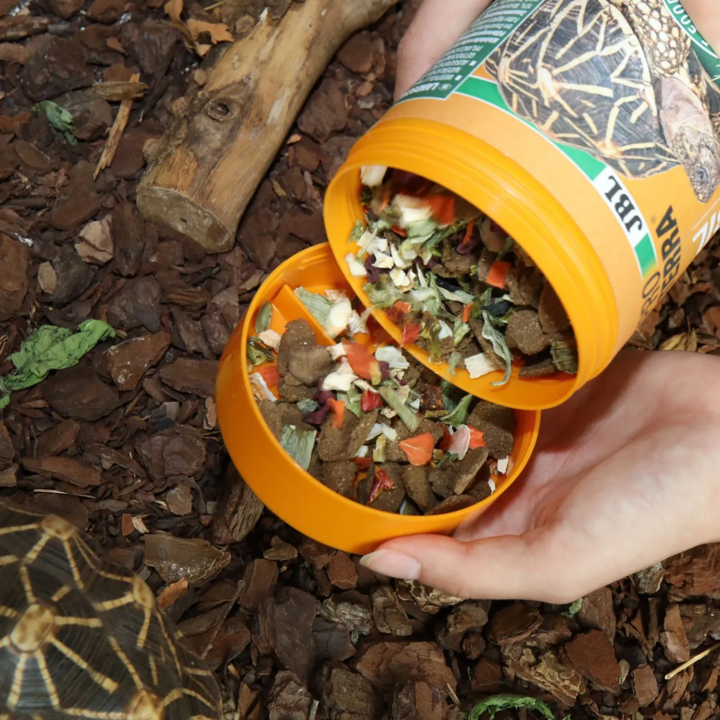 - Schildpadden zijn dol op de geur van groentes (paprika, wortel, luzerne, prei, broccoli, rode bieten, pastinaak, enz), die een gezonde aanvulling op de plantaardige voeding vormen