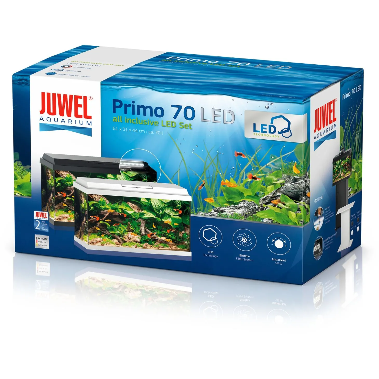 Wanneer je het Juwel Aquarium Primo 70 LED in huis haalt, heb je gelijk alles wat je nodig hebt om een aquarium op te starten. Zo bevat de set ledverlichting, verwarming en het Bioflow One filter.