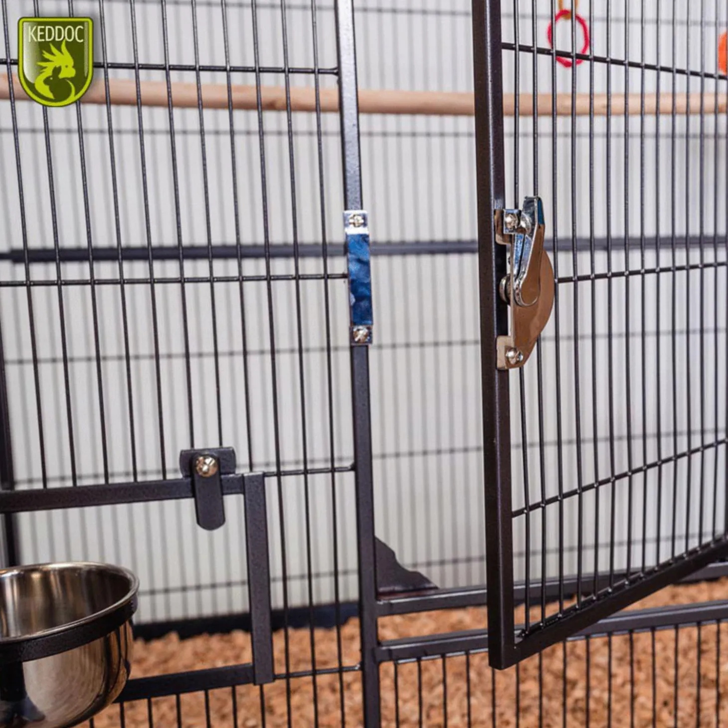 De Florida vogelkooi is een ruim onderkomen voor kleinere papegaaisoorten (zoals dwergpapegaaien of bonte boeren) en grote parkieten. Jouw vogel heeft voldoende ruimte om zich binnen de kooi te bewegen. Dankzij de stevige zwenkwielen is deze vogelkooi gemakkelijk te verplaatsen. De bak is voorzien van een handige lade, waardoor het schoonmaken van de kooi eenvoudig is. Hierdoor kunnen jouw vogel(s) gewoon in de vogelkooi blijven zitten.