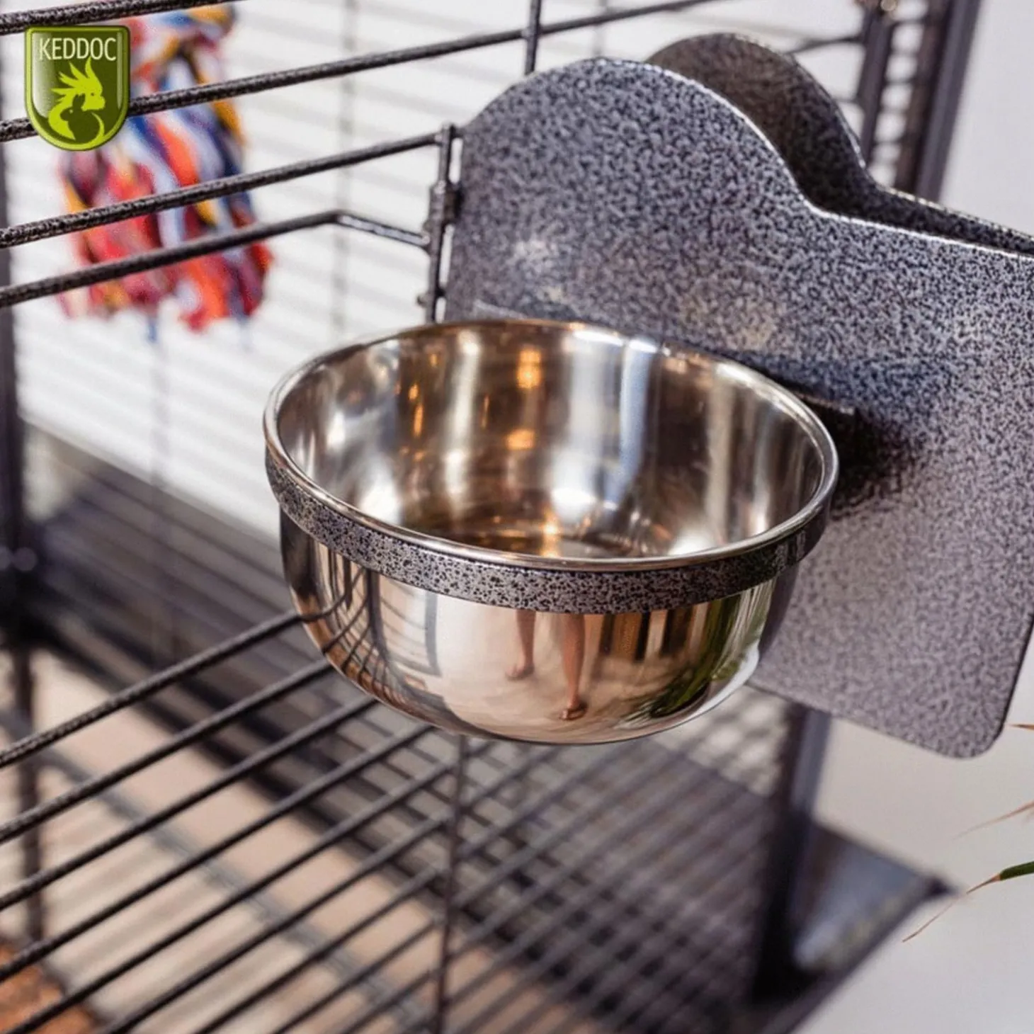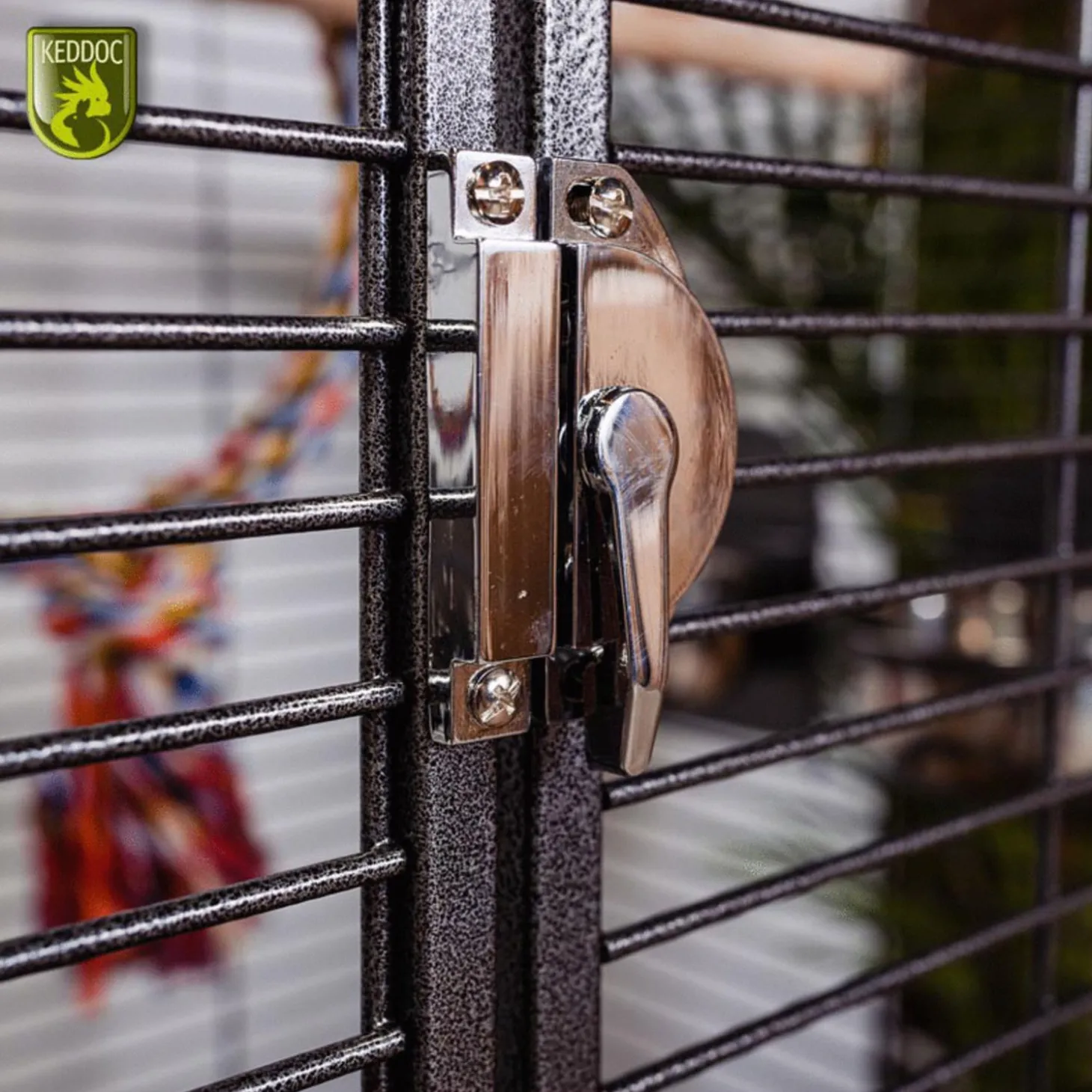 Deze prachtige vogelkooi is geschikt voor zowel parkieten als papegaaien. Een extra voordeel van deze kooi is het open dak, waar je een zitstok aan kunt bevestigen voor meer bewegingsruimte voor je vogel. Grote parkieten en papegaaien zijn dol op klimmen, daarom heeft deze kooi zowel horizontale als verticale tralies. Dankzij de combinatie van horizontale en verticale tralies, samen met de stevige dikke stalen tralies, is deze kooi bijzonder robuust.