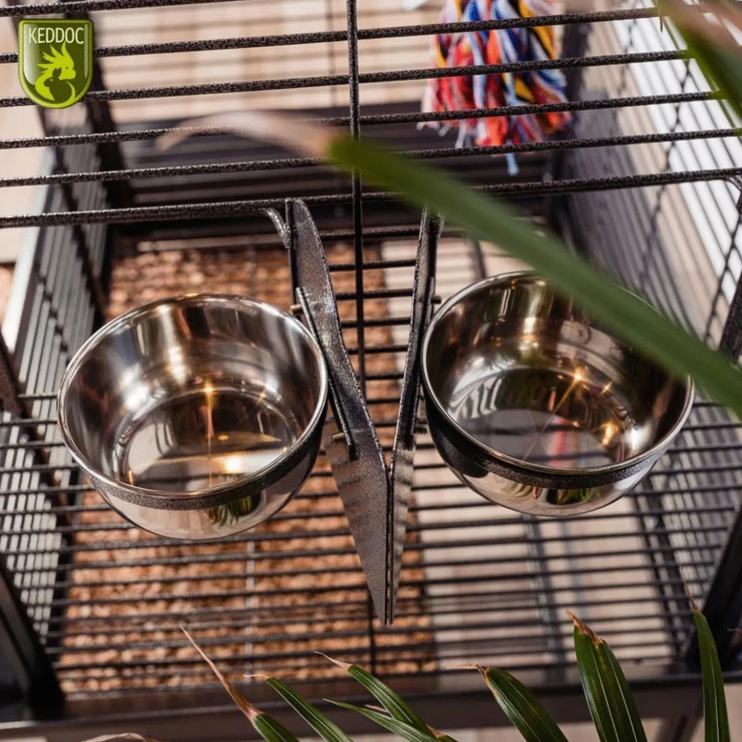 De voer- en waterbakken kunnen veilig naar buiten worden gedraaid via beveiligde deurtjes met sluitingen. Dit maakt het voeren en voorzien van water niet alleen gemakkelijker, maar ook veiliger. Je hoeft niet in de kooi te reiken, waardoor je jouw vogel een eigen veilige ruimte kunt gunnen. De deurtjes van de kooi zijn voorzien van stevige draaisluitingen.