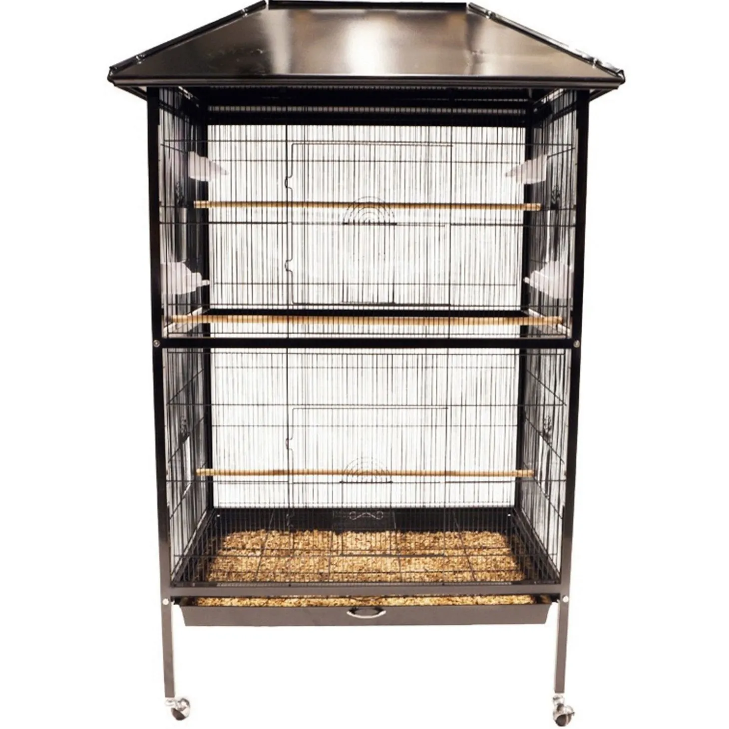 Deze volière is ontworpen om zowel binnen als buiten te kunnen plaatsen. Het dak is zo geconstrueerd dat regen, vuil en andere elementen van buitenaf worden buitengehouden. Hierdoor is het een ideale kandidaat voor een buitenvolière tijdens het komende seizoen.