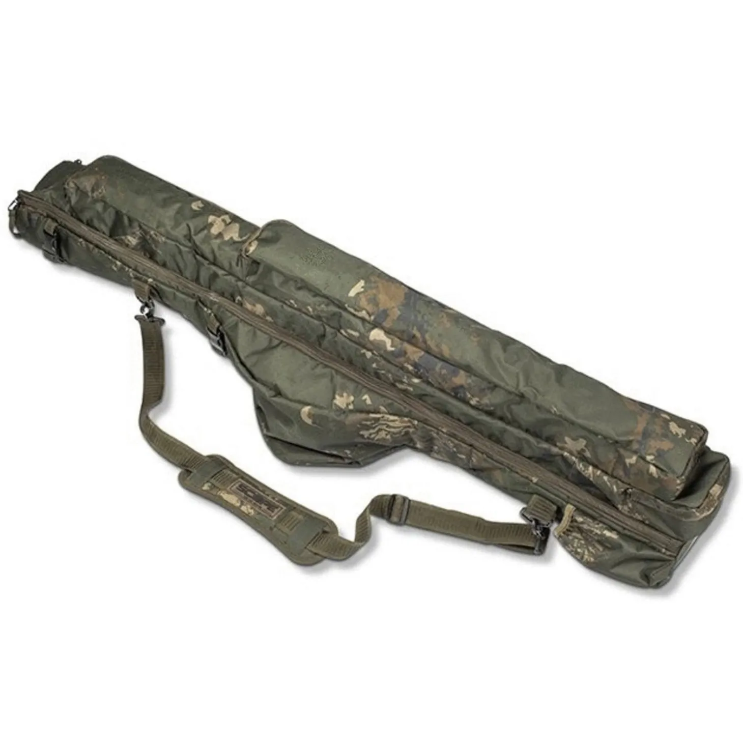 De Nash Scope OPS 3 Rod Skin biedt een totaal andere kijk op het ontwerp in hengelbescherming. De Scope OPS Skins zijn volledig gevoerd, hebben grote molenvakken voor big pit molens en zijn voldoende ruim om de hengels met een 50mm startoog op te bergen. De handgrepen van de molens kunnen mooi opgeborgen worden dankzij een velcro flap. Daarnaast is de Nash Scope OPS 3 Rod Skin uitgerust met een zijvak met ritssluiting voor netten en retainers, een zijvak voor je banksticks en rodpod, de handvaten zijn gemaakt van een elastische en comfortabele stof zodat het gemakkelijk is om de tas te dragen, en als laatste is de tas nog eens uitgerust met een klein zakje waarin u lood en ander klein materiaal kan opbergen.