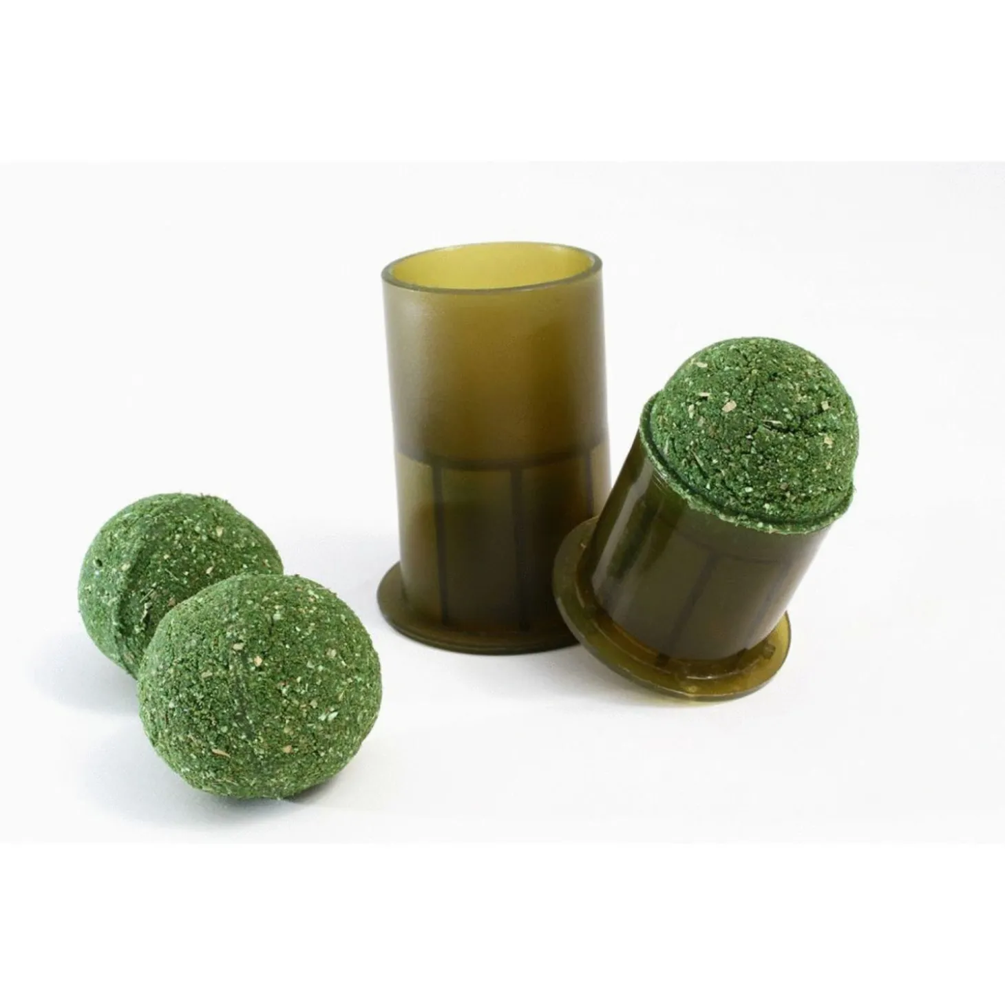 Alles wat je hoeft te doen is een helft met grondvoer opvullen, het bovenste deel erop plaatsen en duwen. Vervolgens op de ‘verlosknop’ drukken en je heb bol grondvoer die zo compact is die je – als je mix helemaal op punt is – mijlenver met je katapult weg kunt schieten. Wat meer is, meer dan een paar seconden duurt het niet om deze ballen te maken, in feite even snel als je de Ball Maker kan hervullen!