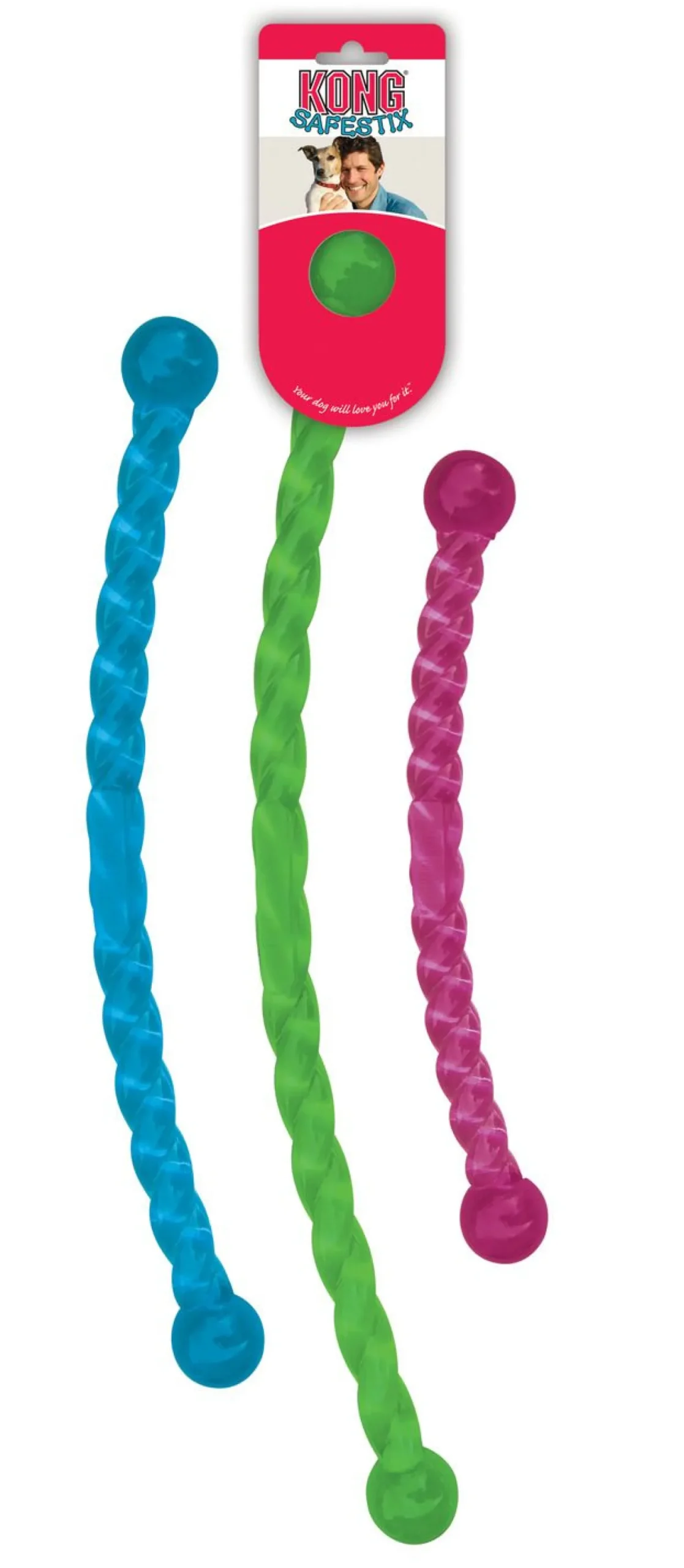 De Safestick van KONG is een geweldig gooi- en apporteerspeeltje voor je hond. De Safestick is gemaakt van één doorlopend stuk flexibel en duurzaam materiaal dat extra veiligheid biedt. De Safestick is bijvoorbeeld een veilig alternatief voor een tak. Deze Safestick kan drijven op het water en stimuleert gezonde lichaamsbeweging en speelplezier! De Safestick buigt, stuitert en heeft twee afgeronde uiteinde.