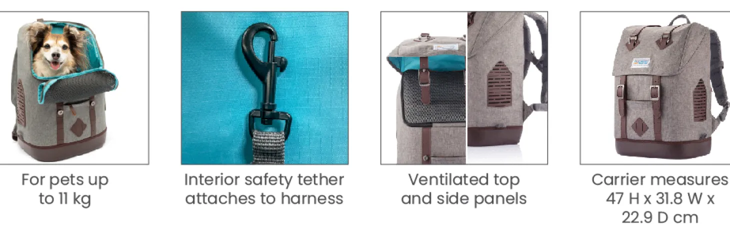 De K9-rugzak heeft alles wat je zoekt in een hondendraagtas. De tas heeft veel ruimte, heeft ventilatiegaten en een wasbaar binnenkussen. Je hond kan op zijn plek gehouden worden met het aanlijnhaakje in de tas. Daarnaast kan je ook je laptop of je tablet kwijt in een speciaal daarvoor ontworpen vak. Je hoeft ook niet bang te zijn om je tas op een vuile ondergrond neer te zetten, want de tas is voorzien van een volledig water- en vuilbestendige bodem.