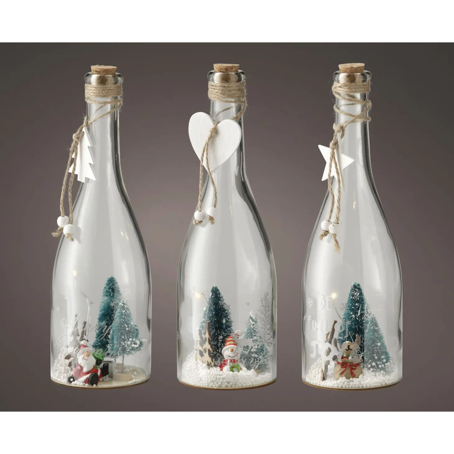 In de fles zit een subtiel lamp verwerkt die zorgen voor een gezellige uitstraling op een donkere winteravond.