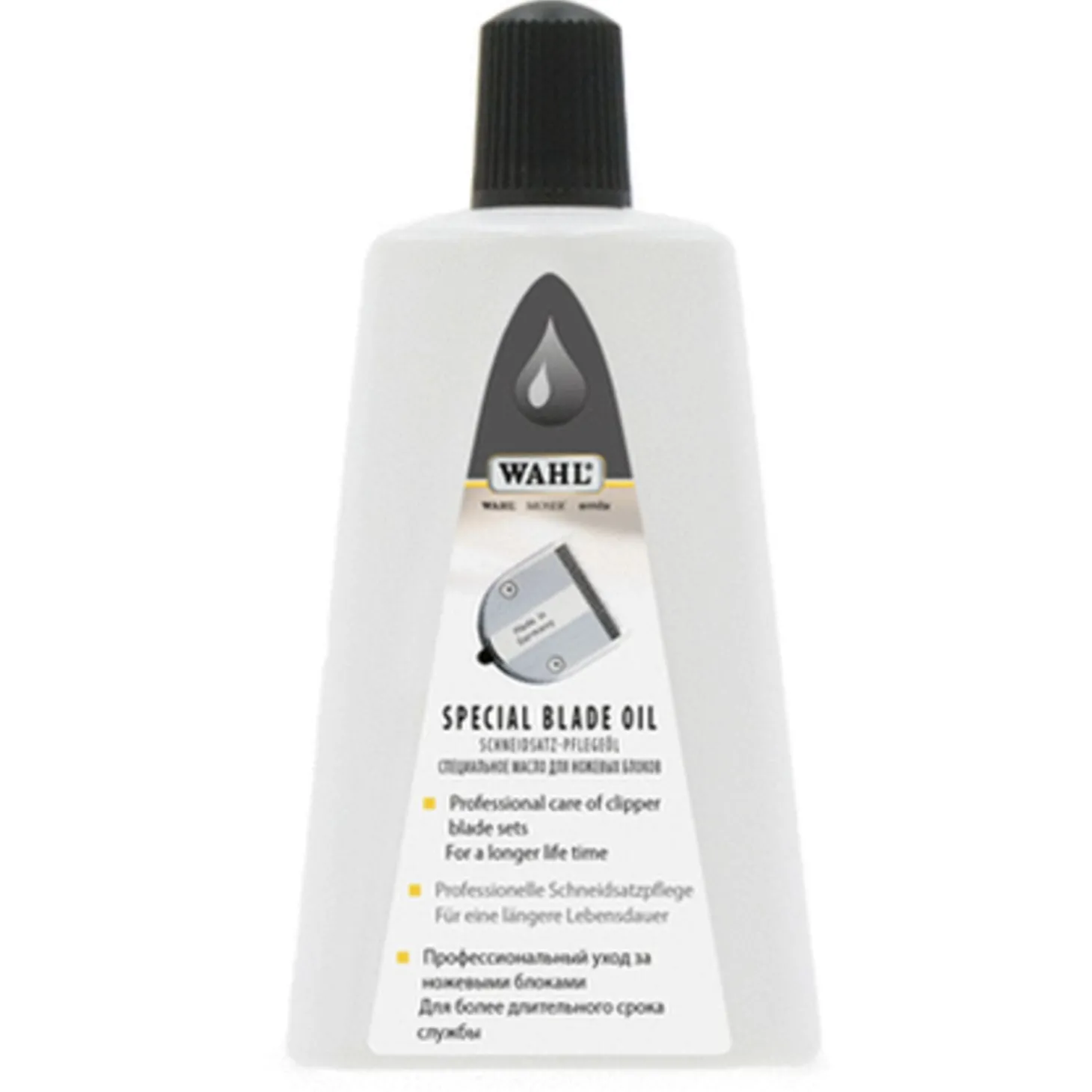 De olie is zeer dun, uiterst vloeibaar en minder vettig vergeleken andere oliën. De olie zorgt ervoor dat het contact tussen een geolied onder- en bovenmes optimaal blijft. Ook wordt de snijcapaciteit positief beïnvloed en wordt het slijtageproces vertraagd. Je zult merken dat je messen langer scherp blijven. De messen dienen voor, tijdens en na de scheerbeurt te worden geolied. Berg de tondeuse geolied op.