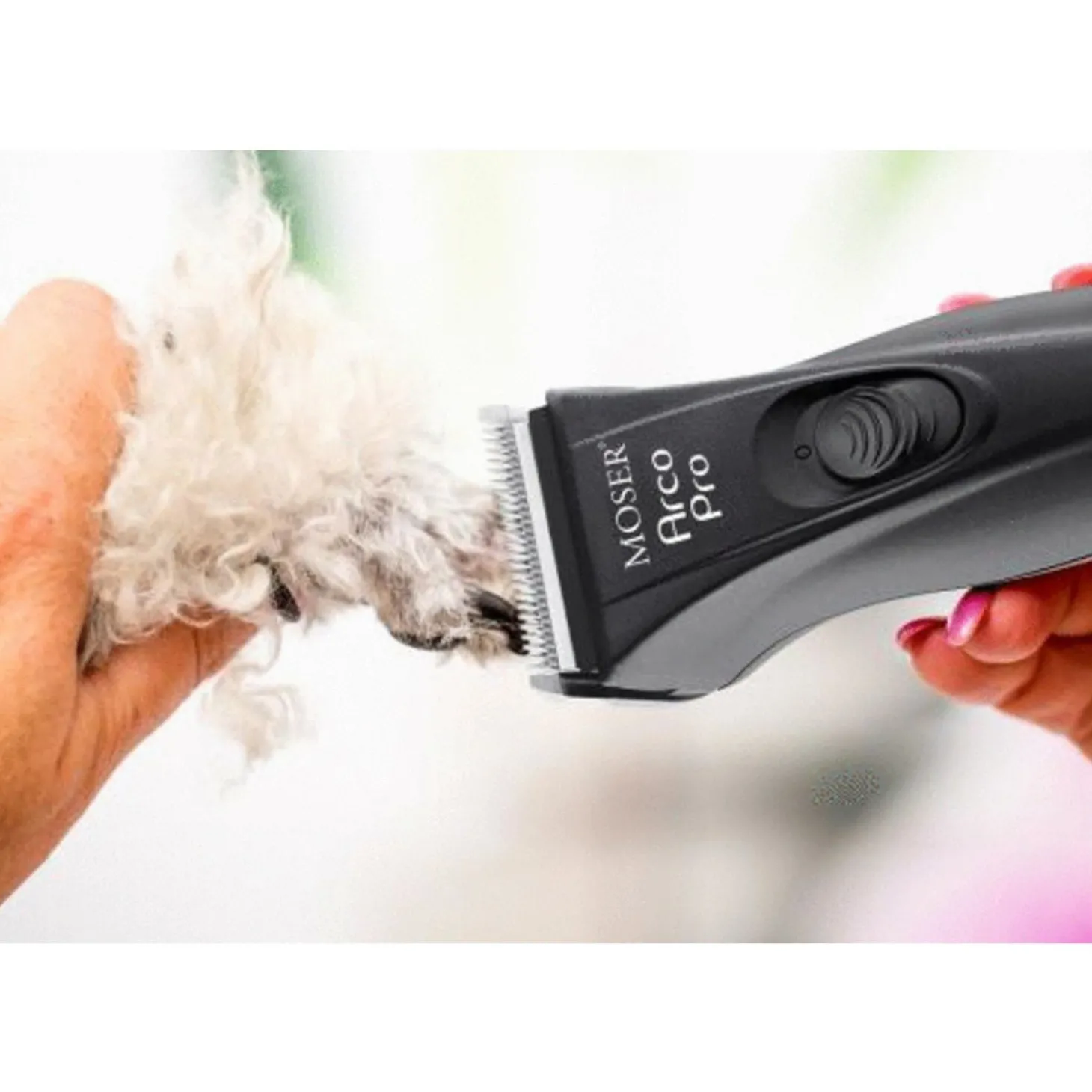 Voor het bijhouden van de hondenvacht hoef je niet altijd naar de trimmer, het is ook mogelijk om thuis aan de slag te gaan. Bijvoorbeeld met de Tondeuse Arco Pro van Moser. Deze draadloze tondeuse is geschikt voor het scheren van kleine en middelgrote honden en katten maar kan ook worden gebruikt voor detailwerk aan pootjes, oren, snuit, kop, genitale delen.