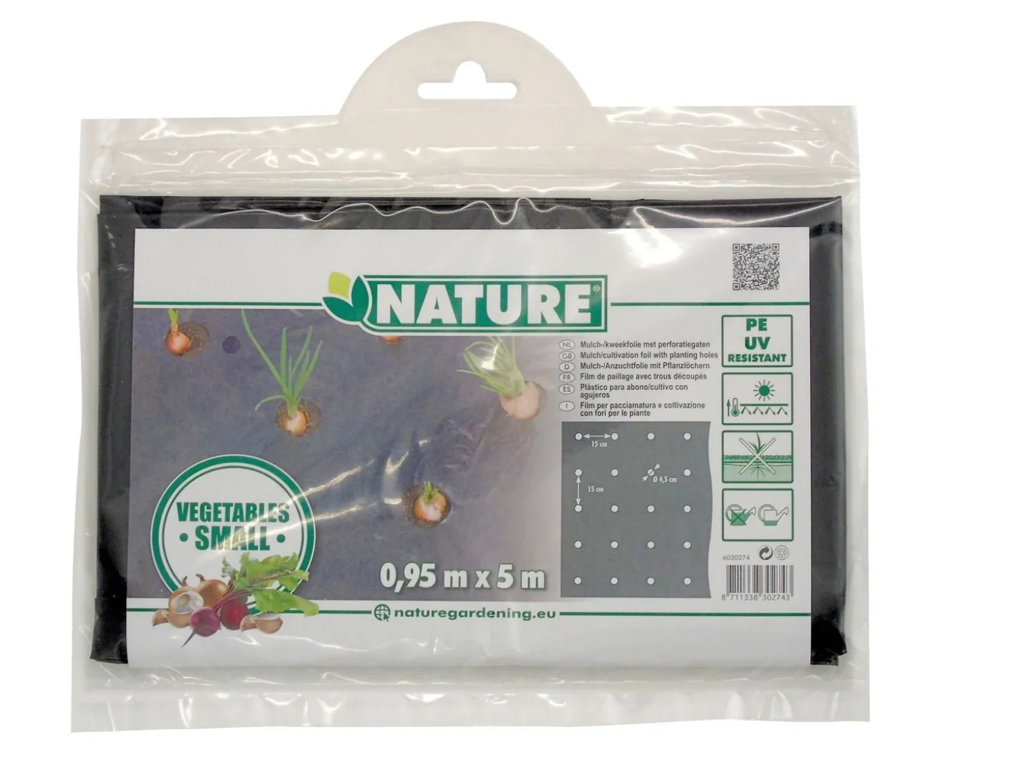 Deze Kweekfolie Kleine Groenten met perforatiegaten van Nature is speciaal ontwikkeld voor kleine groenten. Deze folie bespaart jou enorm veel tijd als je jouw eigen groente wilt kweken! De gaten zitten er namelijk al in. Dit is de ideale kweekfolie waarmee je alle soorten gewassen direct op de juiste afstand van elkaar kunt planten. Naast dat het je tijd bespaart, zal ook de grond minder snel uitdrogen en hou jij onkruid en ongedierte op afstand! Deze folie wordt aanbevolen voor het kweken van de volgende soorten: spinazie, raap, ui, look, pastinaak, koolrabi, prei, biet, bleekselderij, sjalot, schorseneer, tuinboon, venkel, etc.