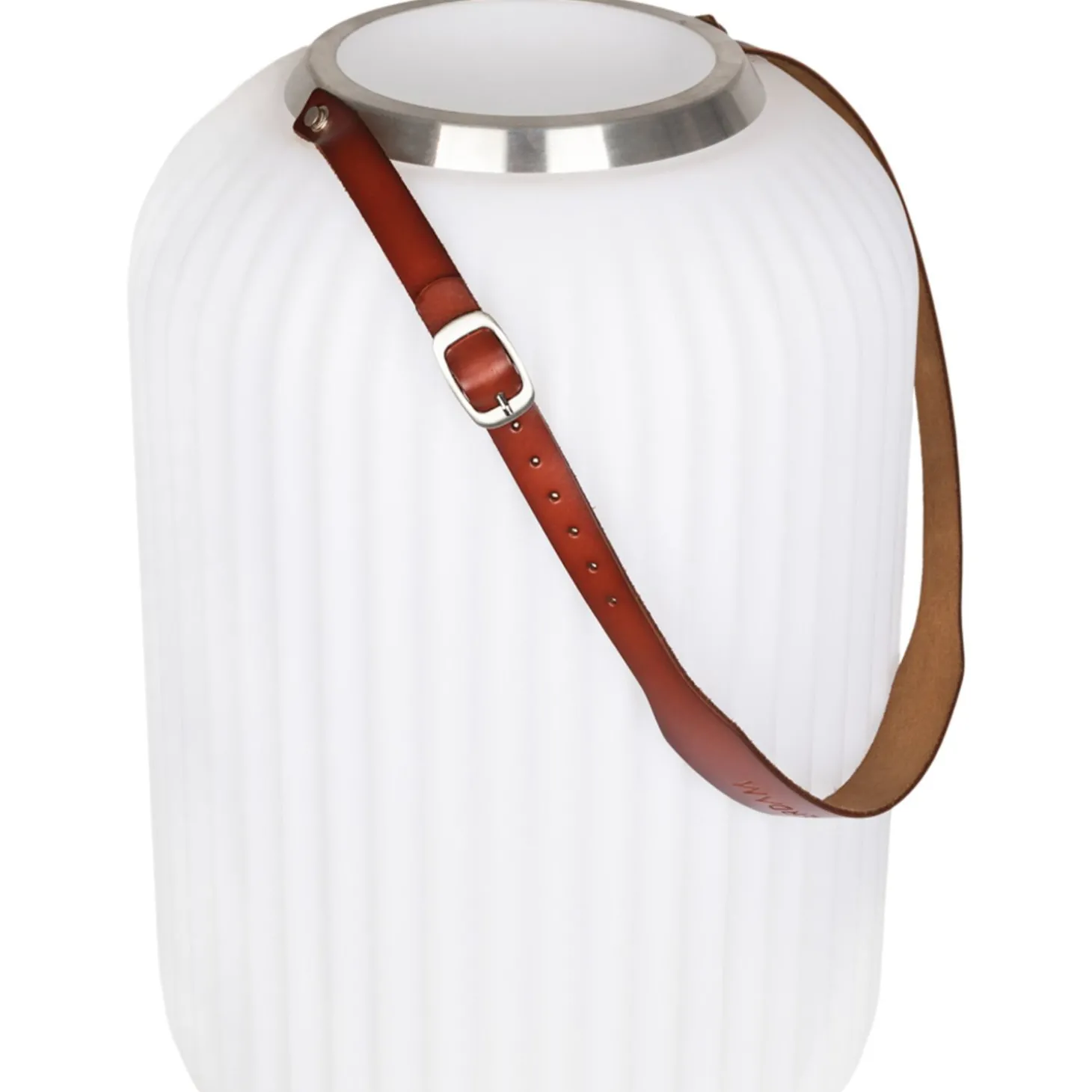 Het A-kwaliteit lederen hengsel is in lengte verstelbaar. Hang The.Lampion hiermee op in een boom