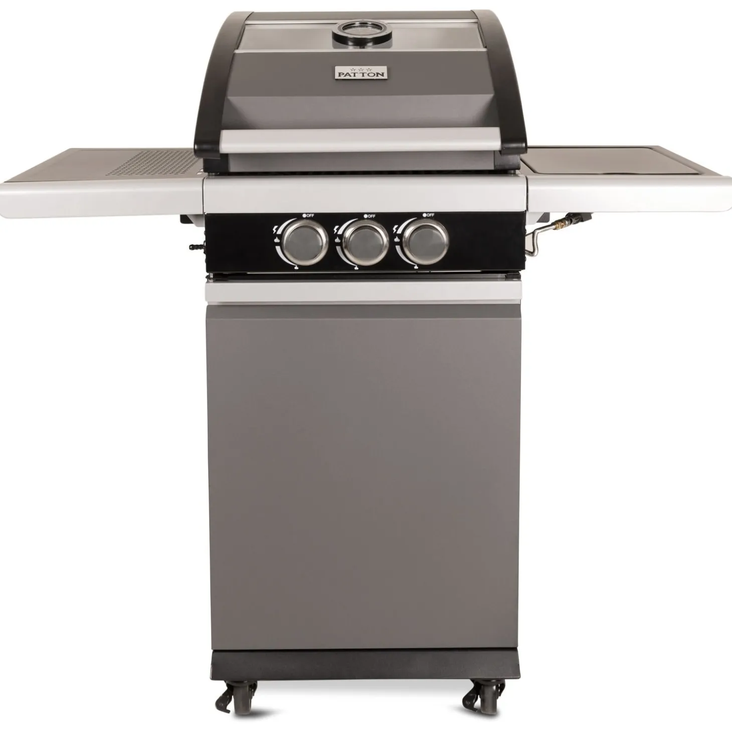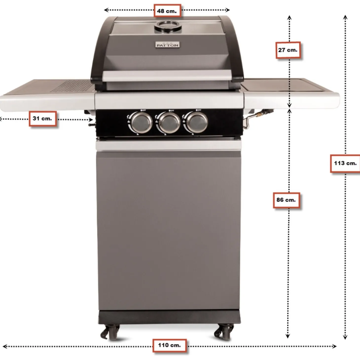 - Dubbelwandige mat grijs metallic “cool-touch” kap incl. stoere thermometer en glazen venster.