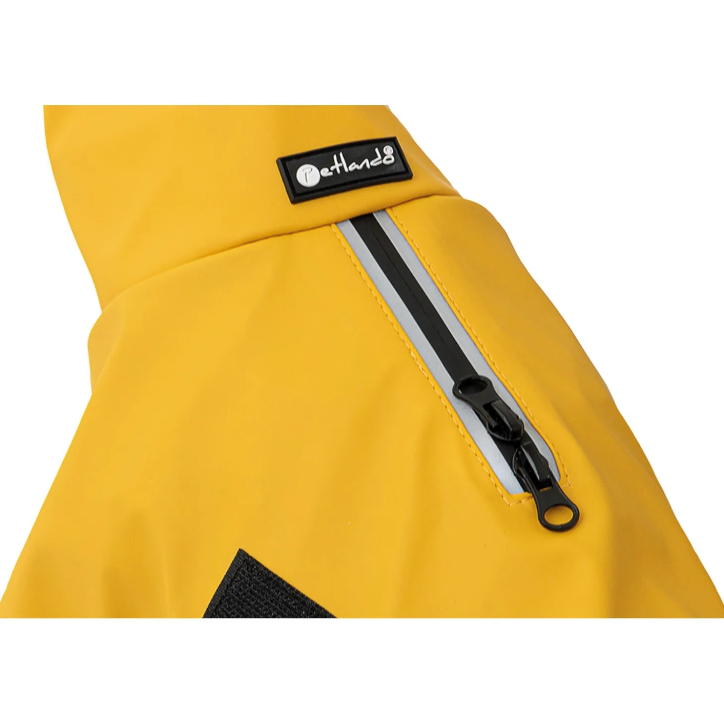 De regenjas is gemaakt van 100% waterdicht materiaal en zal je hond beschermen tegen zowel regen als wind. Je viervoeter blijft ook in guur en donker weer goed zichtbaar dankzij de reflecterende strepen. Met het trekkoord bij de hals kan je de opstaande kraag aanpassen aan de nekomtrek van je hond. Je bevestigt de jas met behulp van klittenband. Op de rug zit een gleuf met dubbele waterdichte ritssluiting waar je de riem doorheen kunt steken om aan de halsband of het tuig vast te maken.