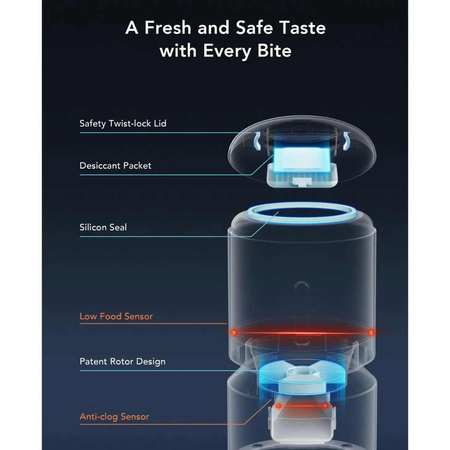 - Vul het 5-liter reservoir met droogvoer, sluit goed af voor maximale versheid.