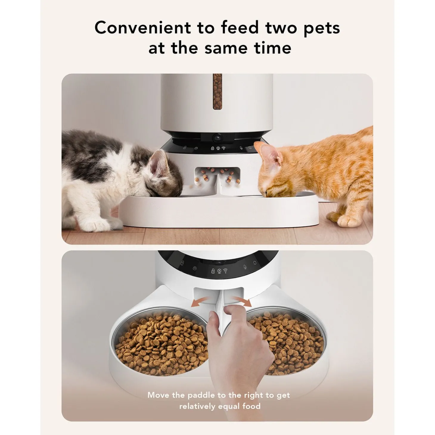Met de Petlibro Granary automatische voerbak Dubbel met camera geef je twee huisdieren altijd vers en op tijd eten, waar je ook bent. Dankzij de HD-camera, meldingen en eenvoudige bediening via de app heb je alles in de hand. Je dieren blijven tevreden én jij blijft gerust. Bestel nu en ervaar het gemak en de controle van Petlibro zelf!