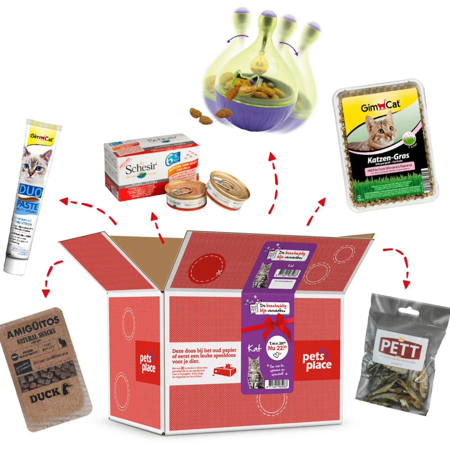 Het Pets Place verwenpakket is een ideaal cadeau voor je kat voor elke gelegenheid. Zo heeft je viervoeter lekkers om van te snoepen en iets leuks om mee te spelen. Trakteren maar!