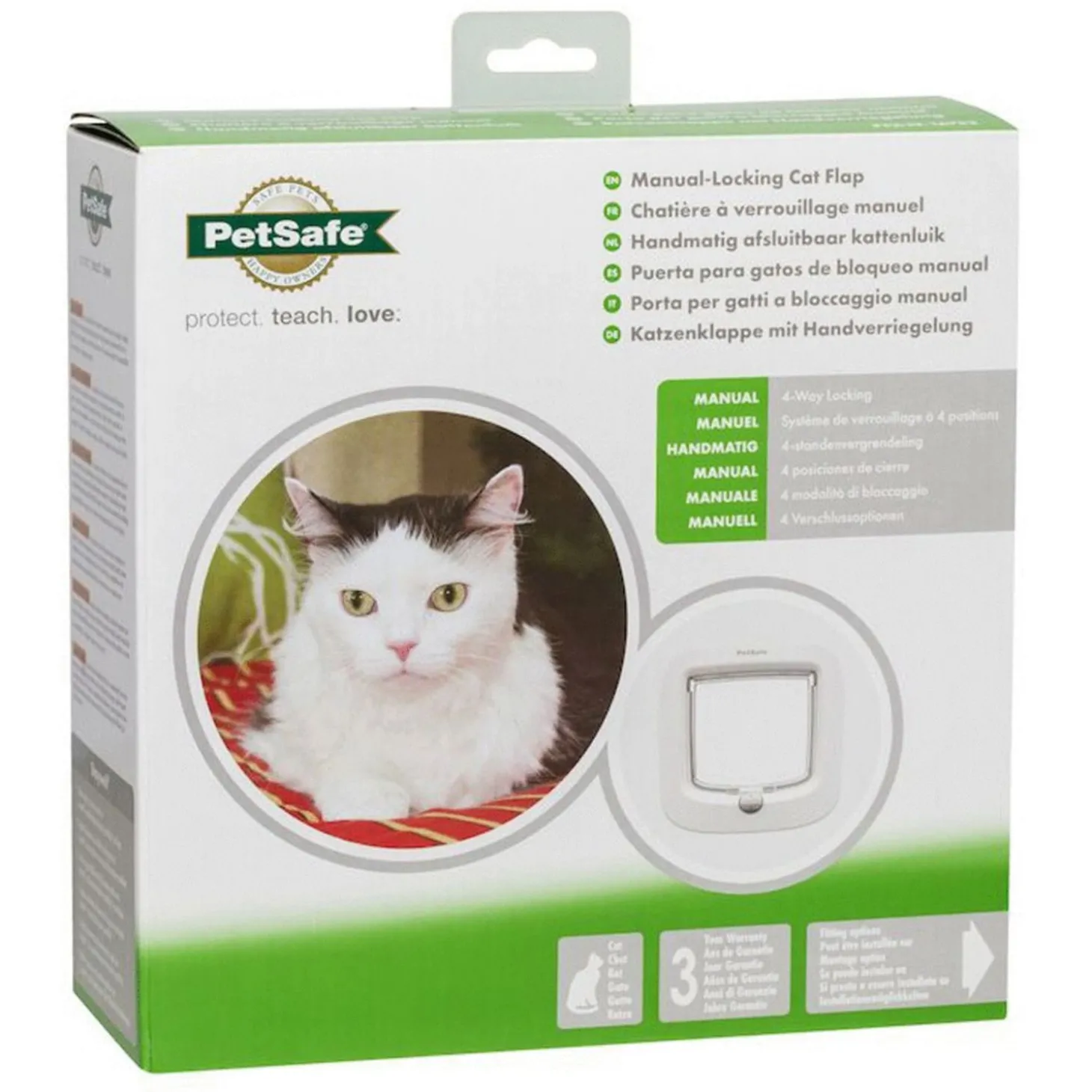 Het handmatig te vergrendelen kattenluik is een makkelijke manier om je kat volledige toegang te geven tot binnen of buiten. Dankzij het verstelbare slot met 4 modi kan je eenvoudig instellen hoe je kat het luik kan gebruiken: je kat kan óf alleen naar binnen, óf alleen naar buiten, óf het luik staat geheel open zodat de kat naar buiten en naar binnen kan óf het luik zit helemaal dicht. Zo kan je bijvoorbeeld voorkomen dat de kat van de buren of andere ongewenste dieren het luik gebruiken.