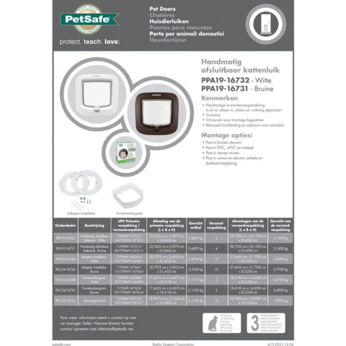 Let op: dit kattenluik is geschikt voor kleine tot middelgrote katten tot 7 kg.